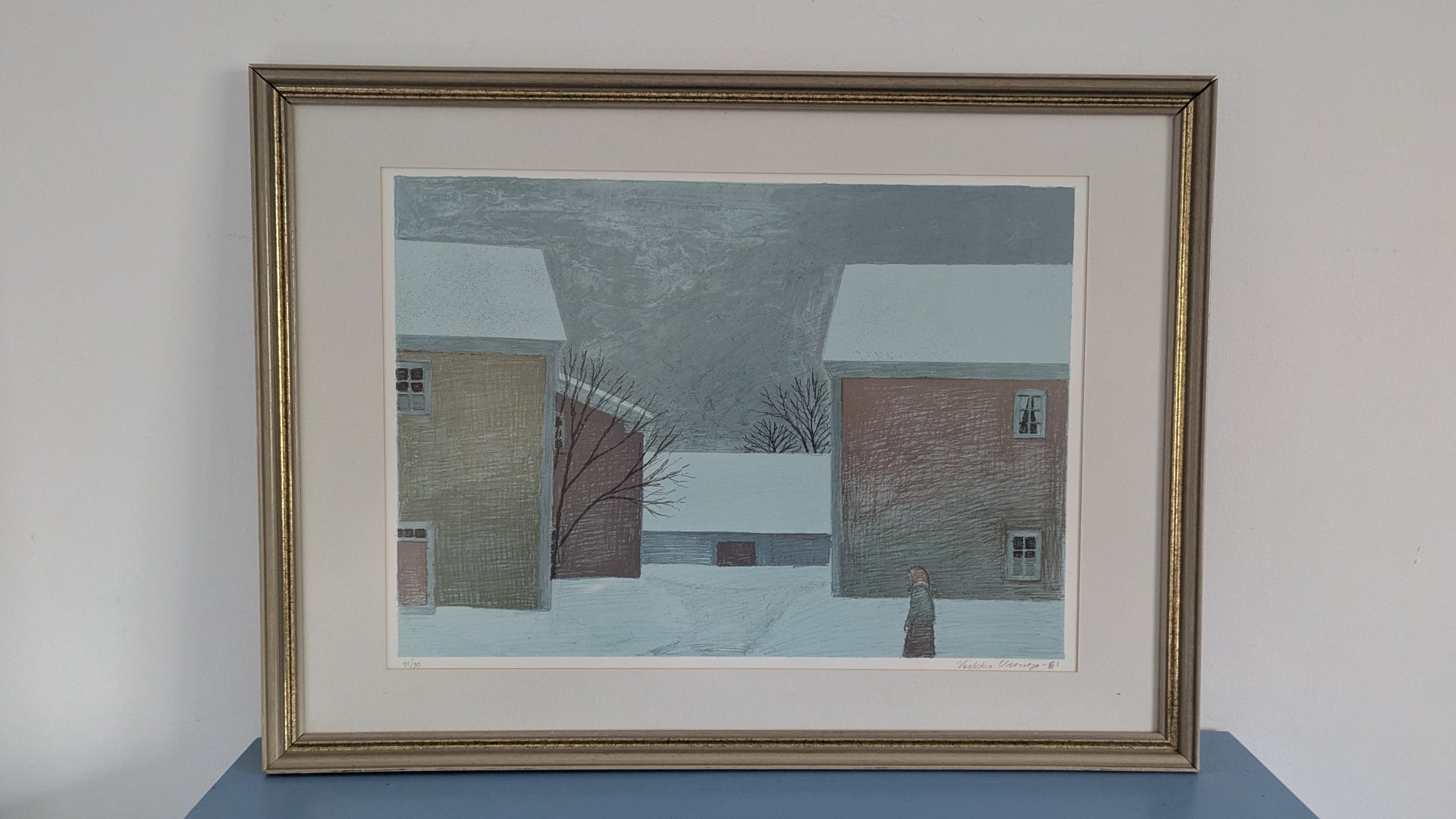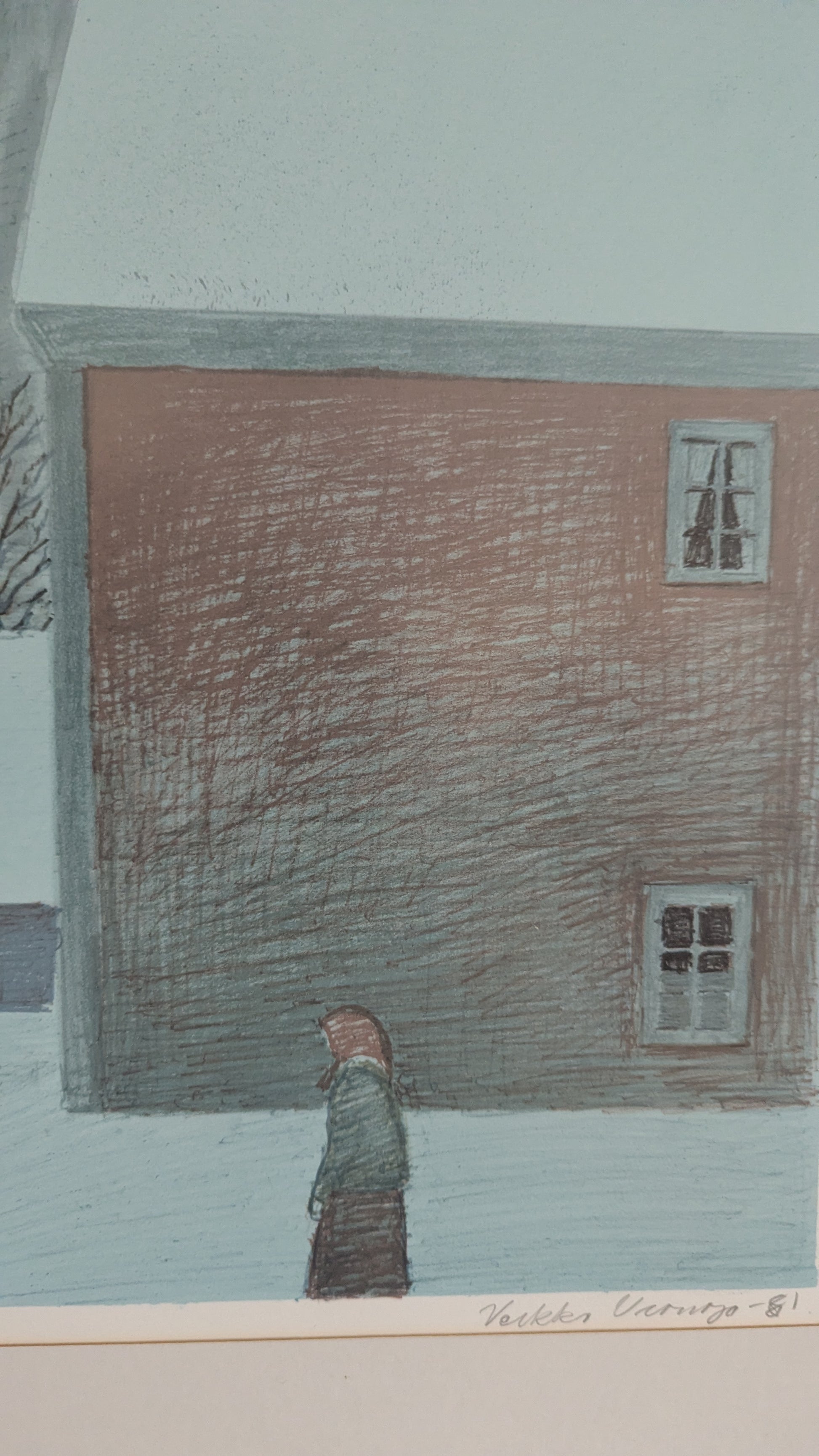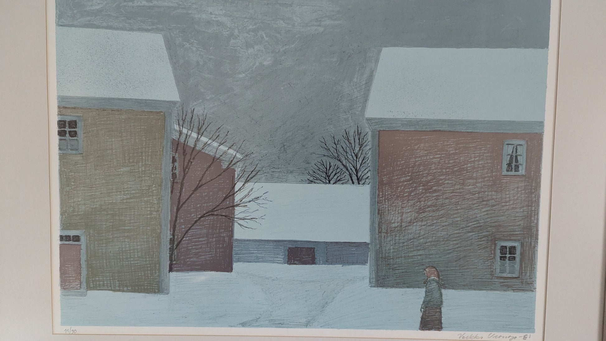 Veikko Vionoja - Talvinen Piha (Signeerattu Litografia 11/90, 1981)
