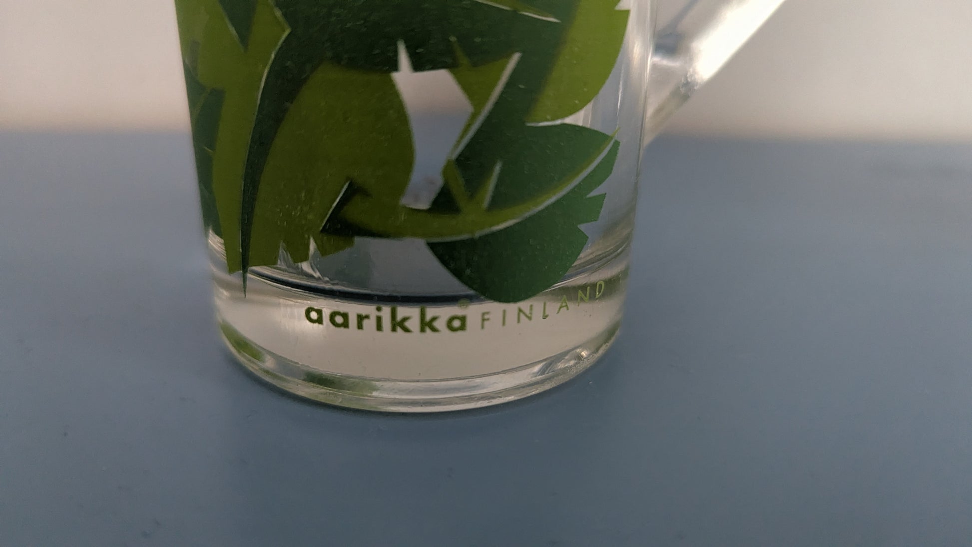 Koivunlehti koristelu ja teksti Aarikka Finland.