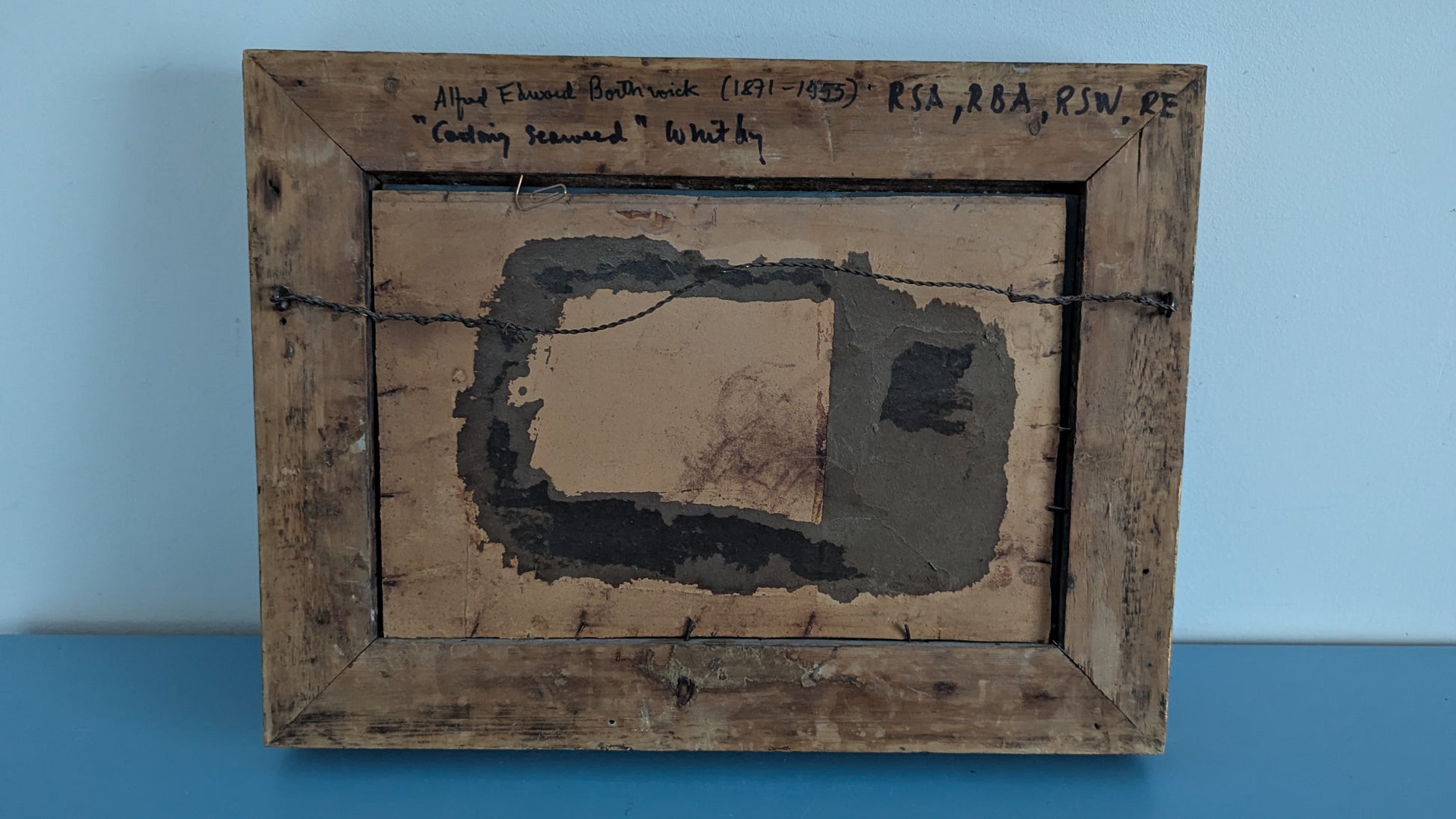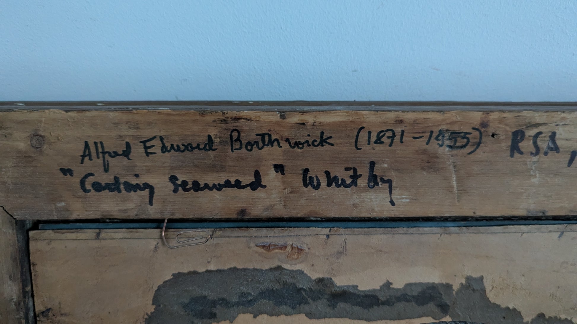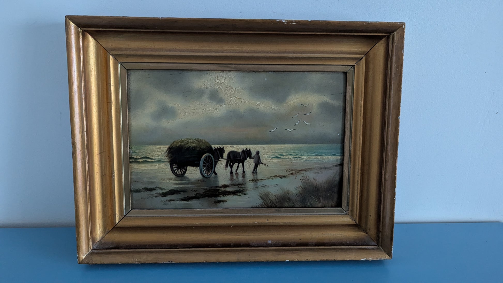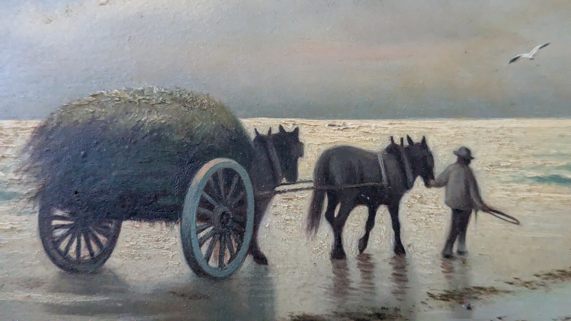 Väitetty Alfred Edward Borthwickin (1871–1955) signeeraama Catching Seaweed (Merilevän Kerääminen) niminen öljyvärityö. Signeerattu AB