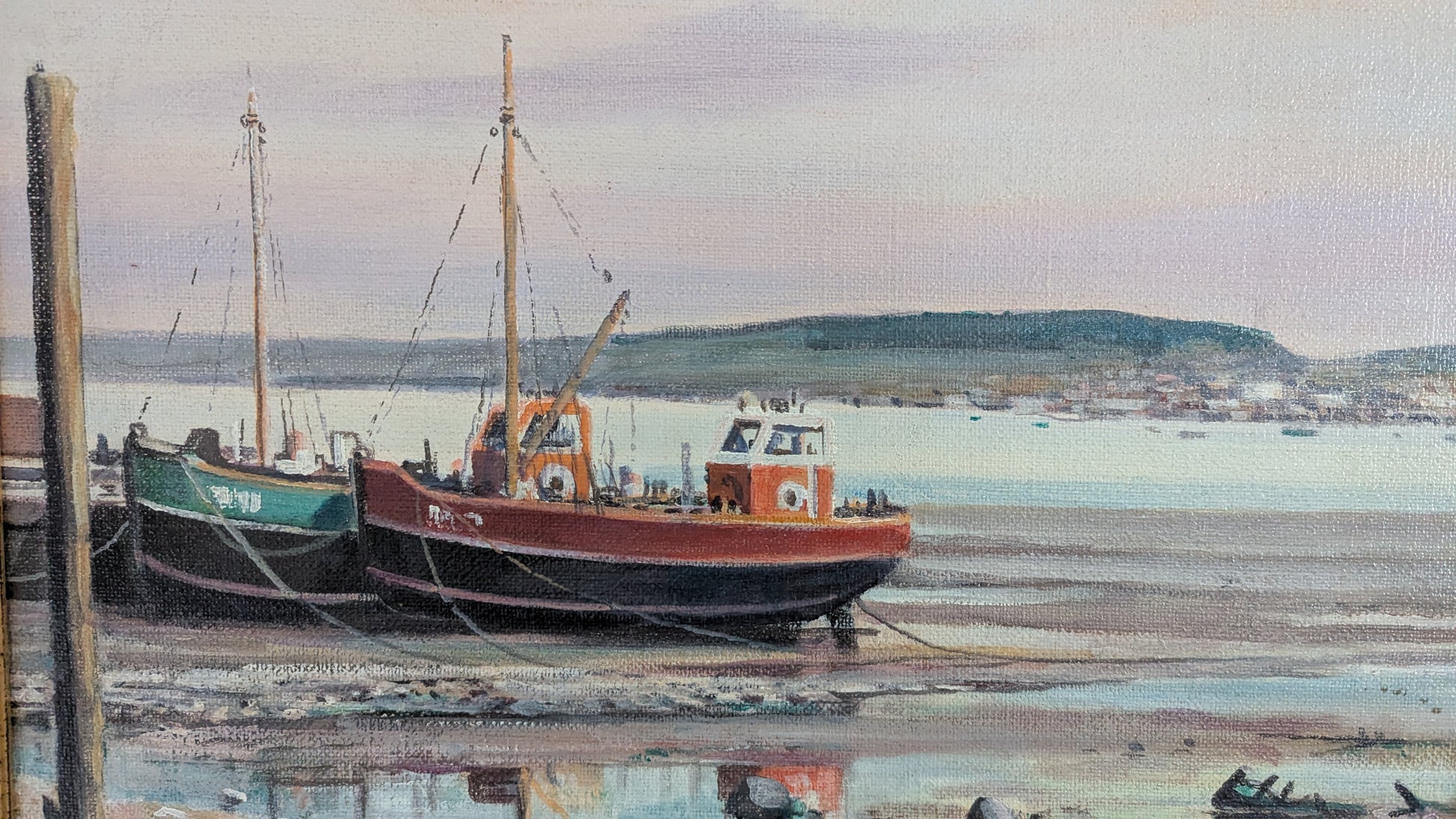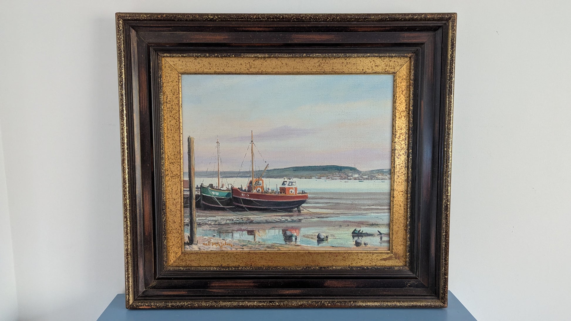 Ali Munsterhjelm signeeraama öljyvärityö kankaalle.