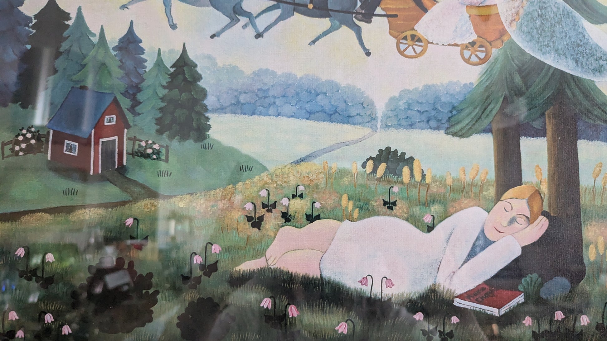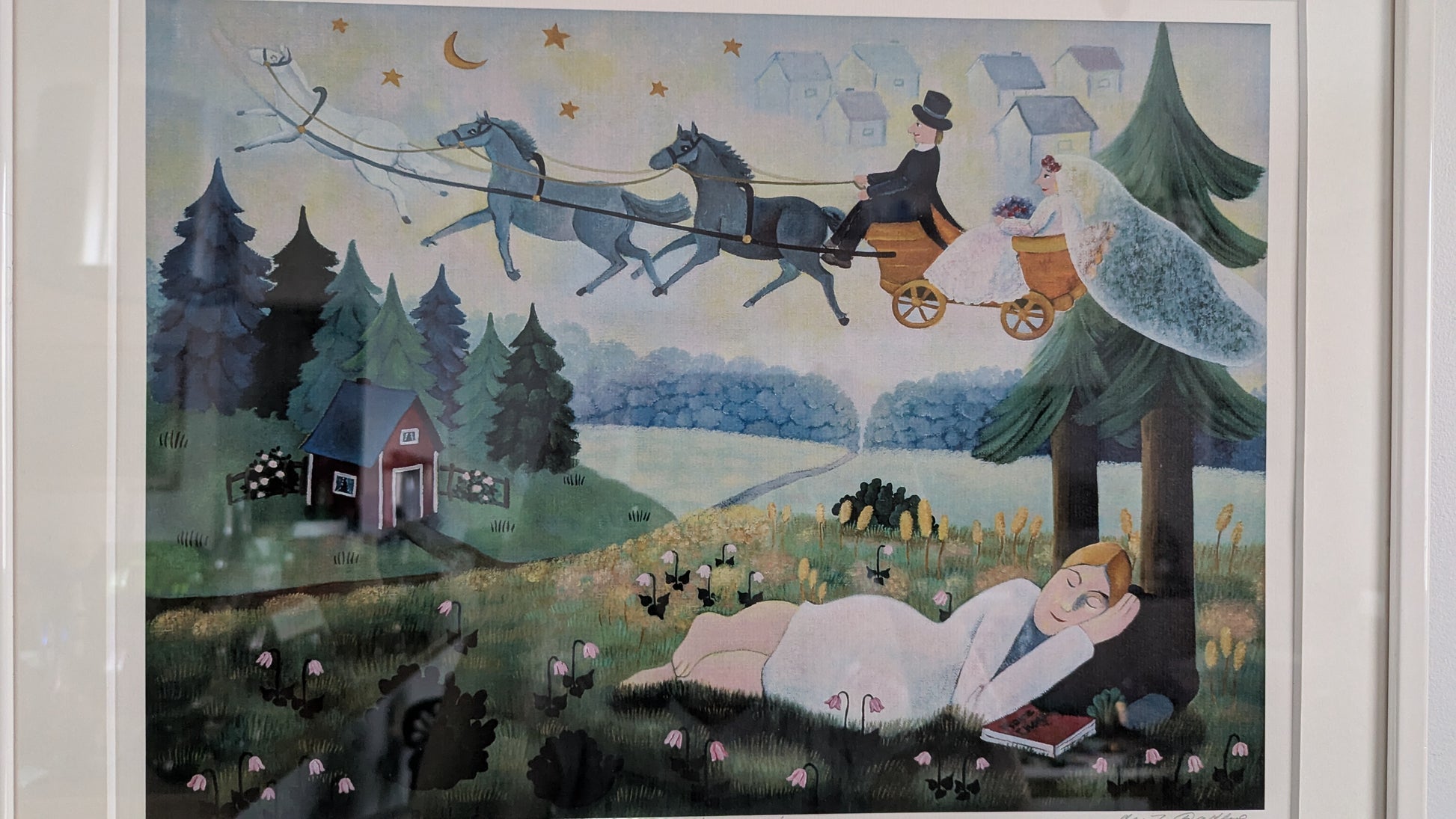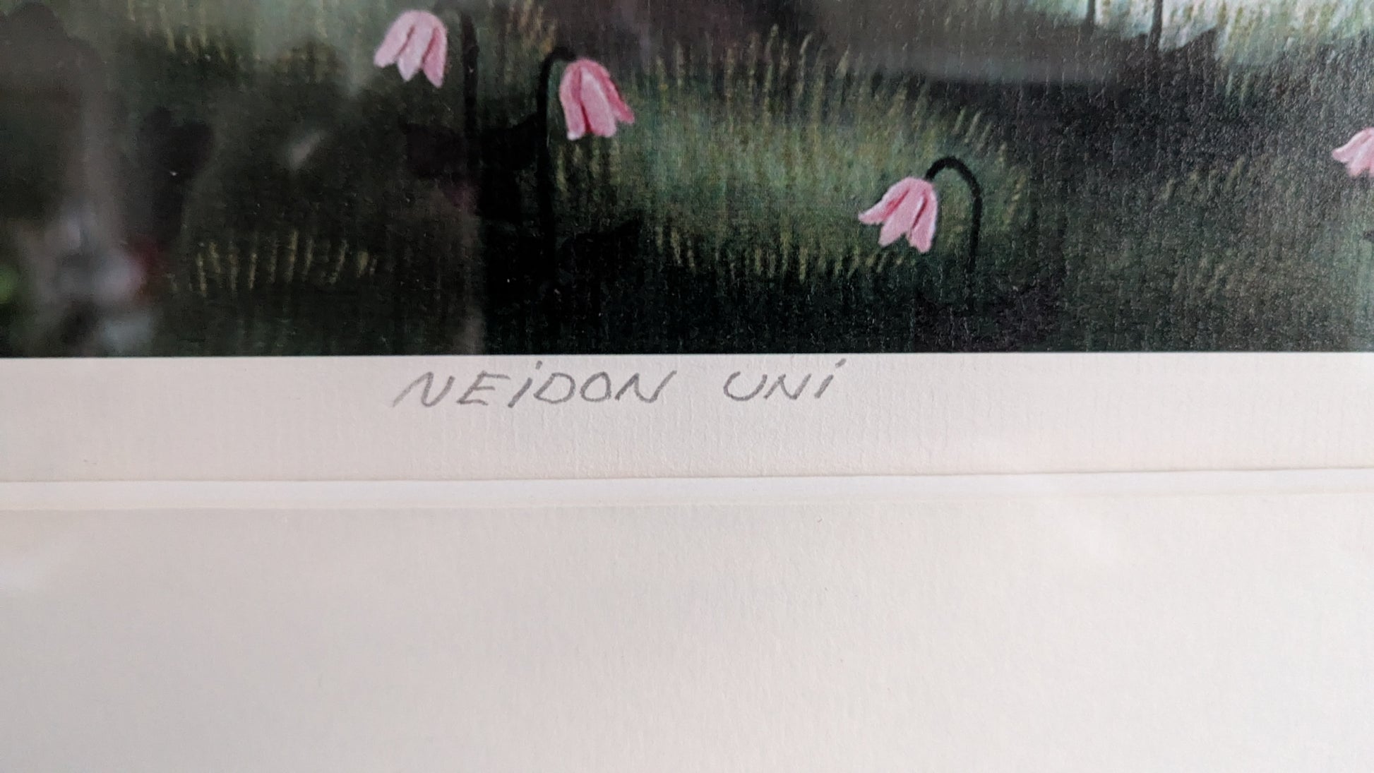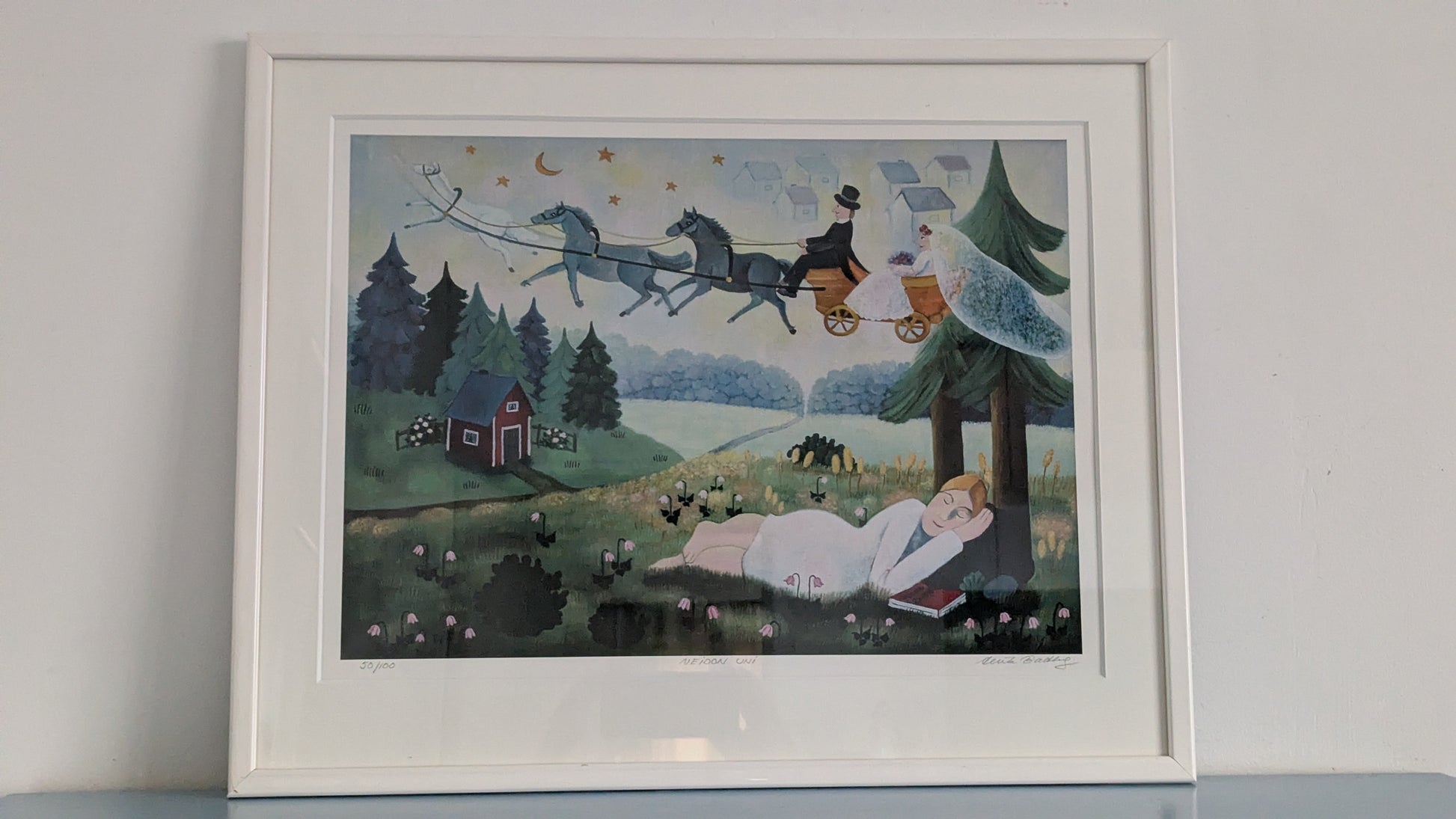 Anita Backlundin signeeraama Neidon Uni niminen grafiikka.