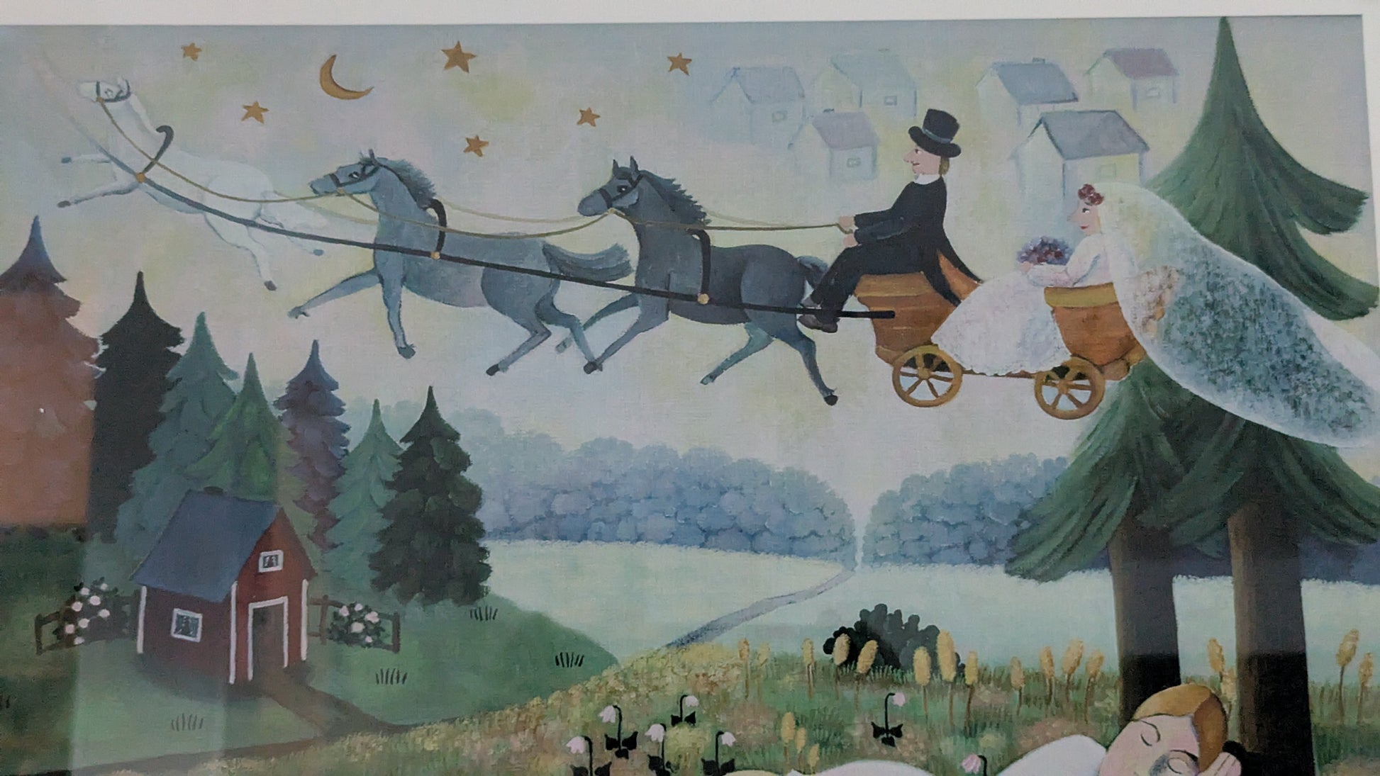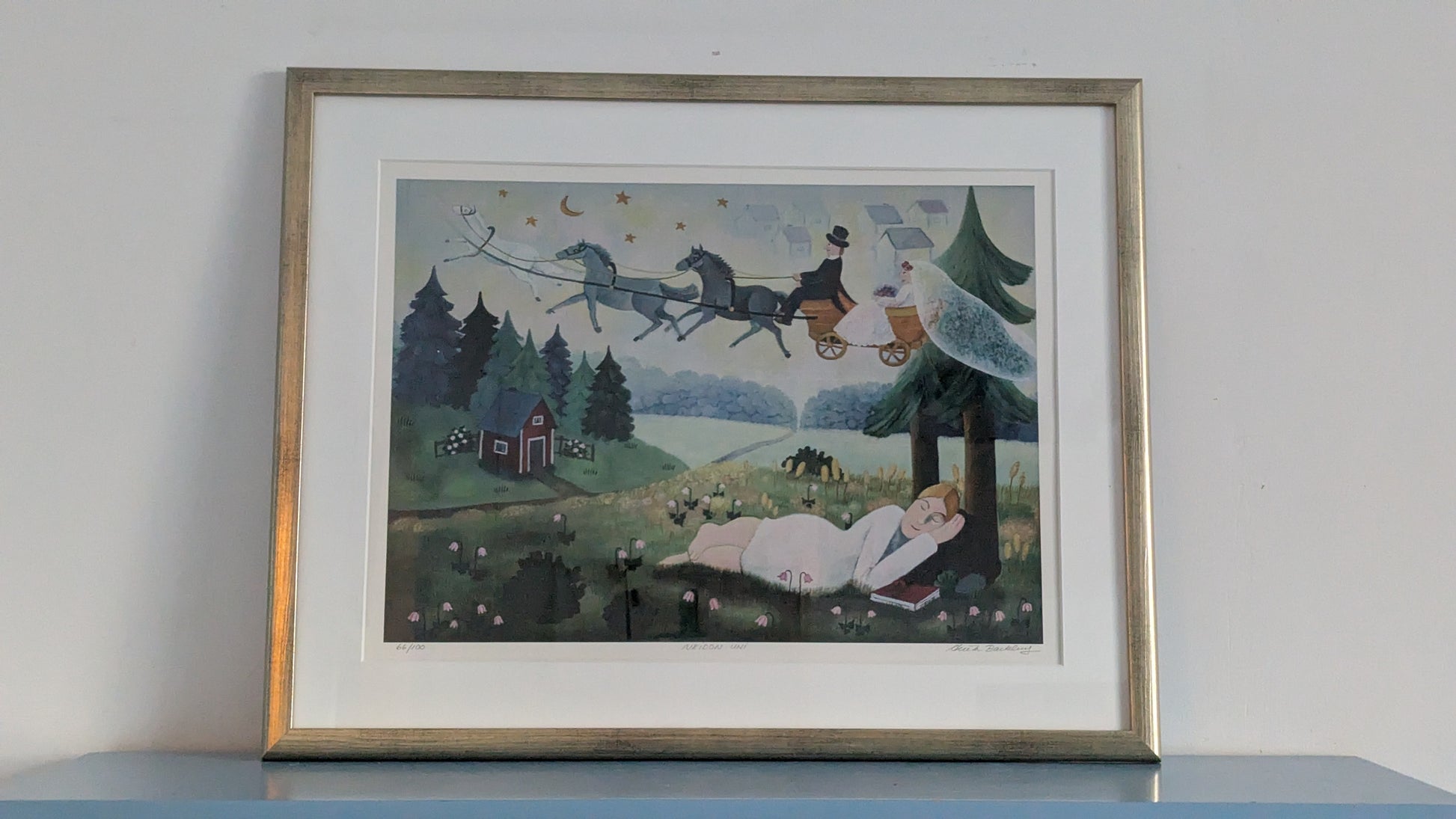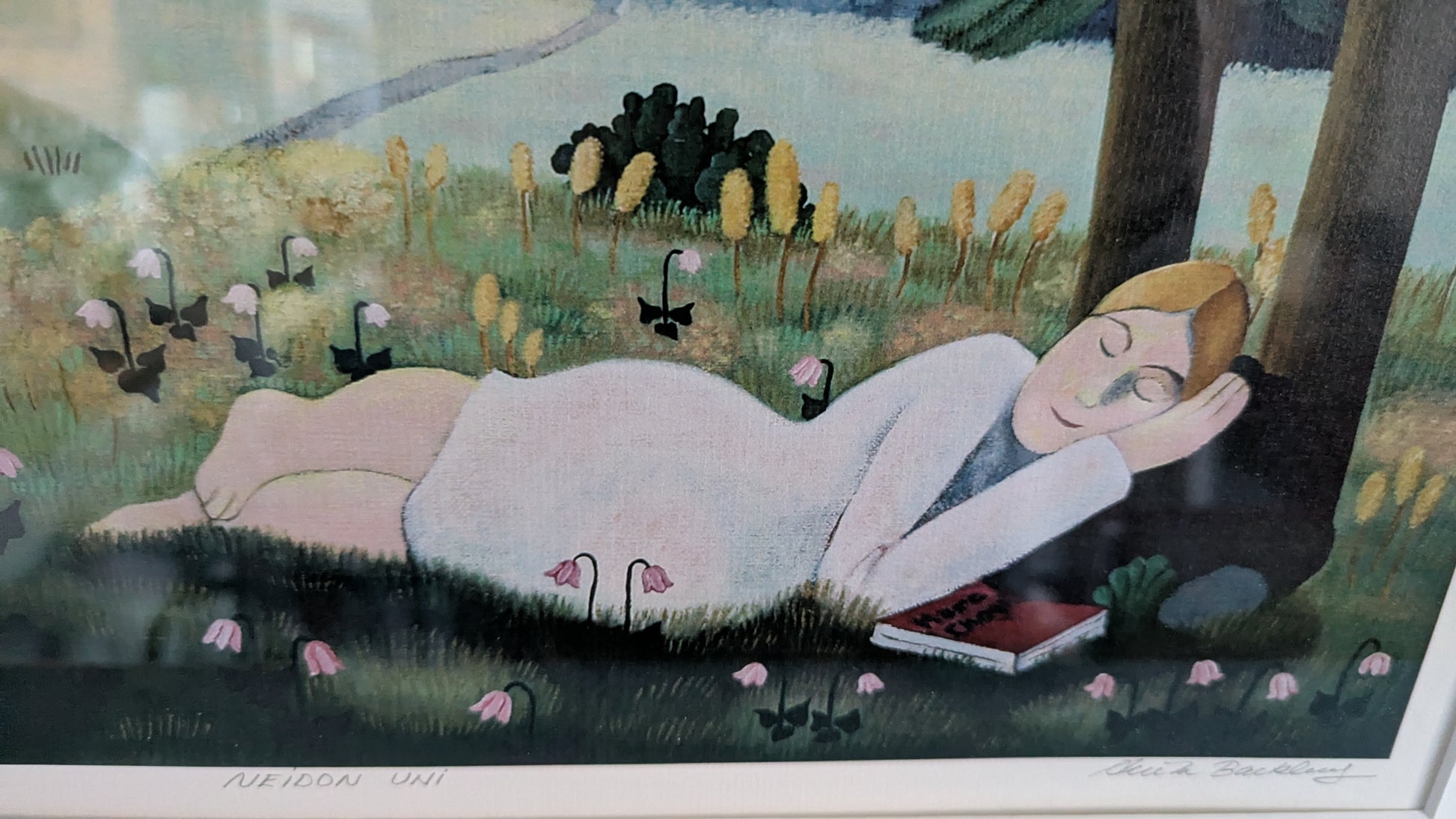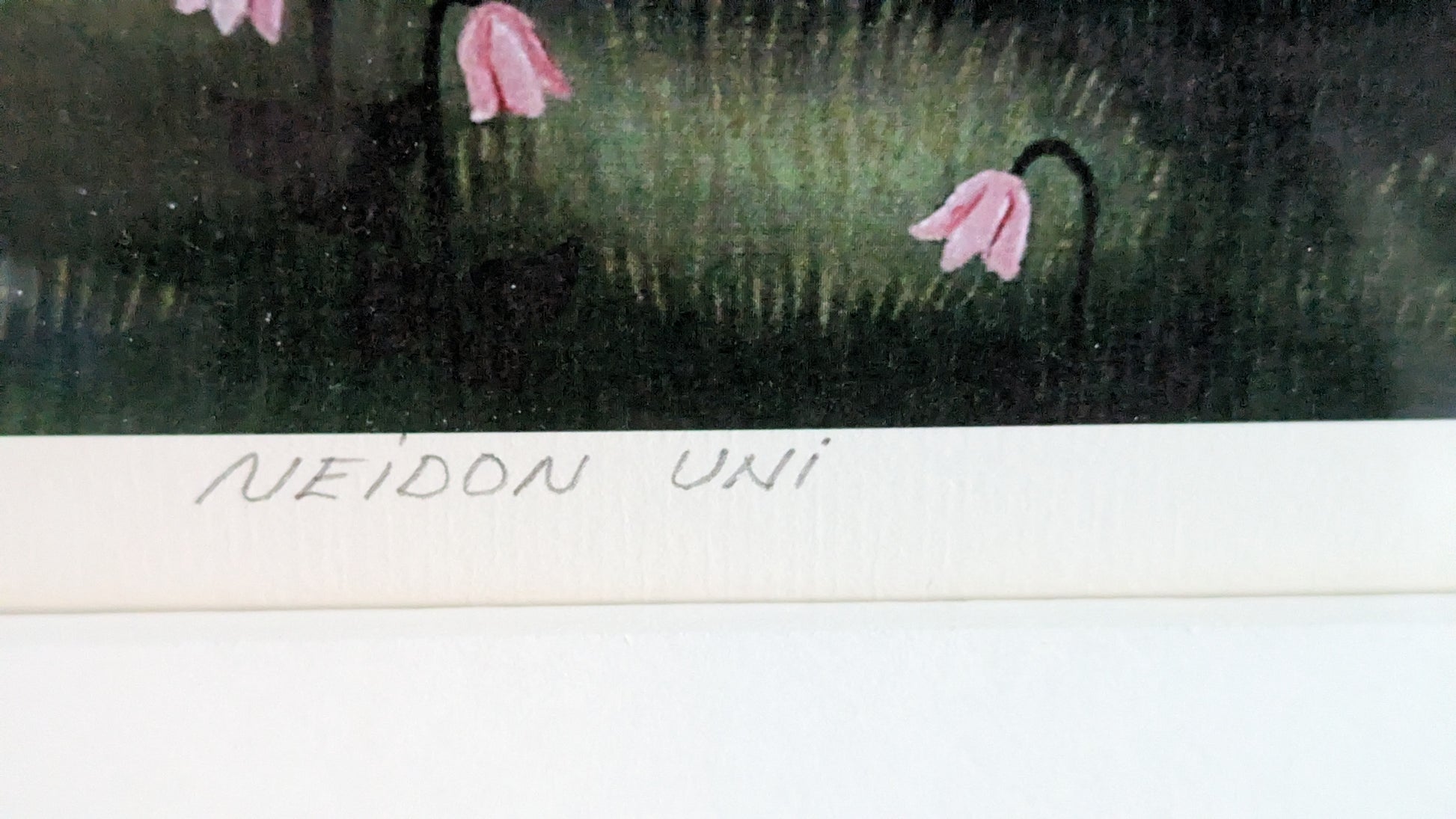 Anita Backlundin signeeraama Neidon Uni niminen grafiikka.