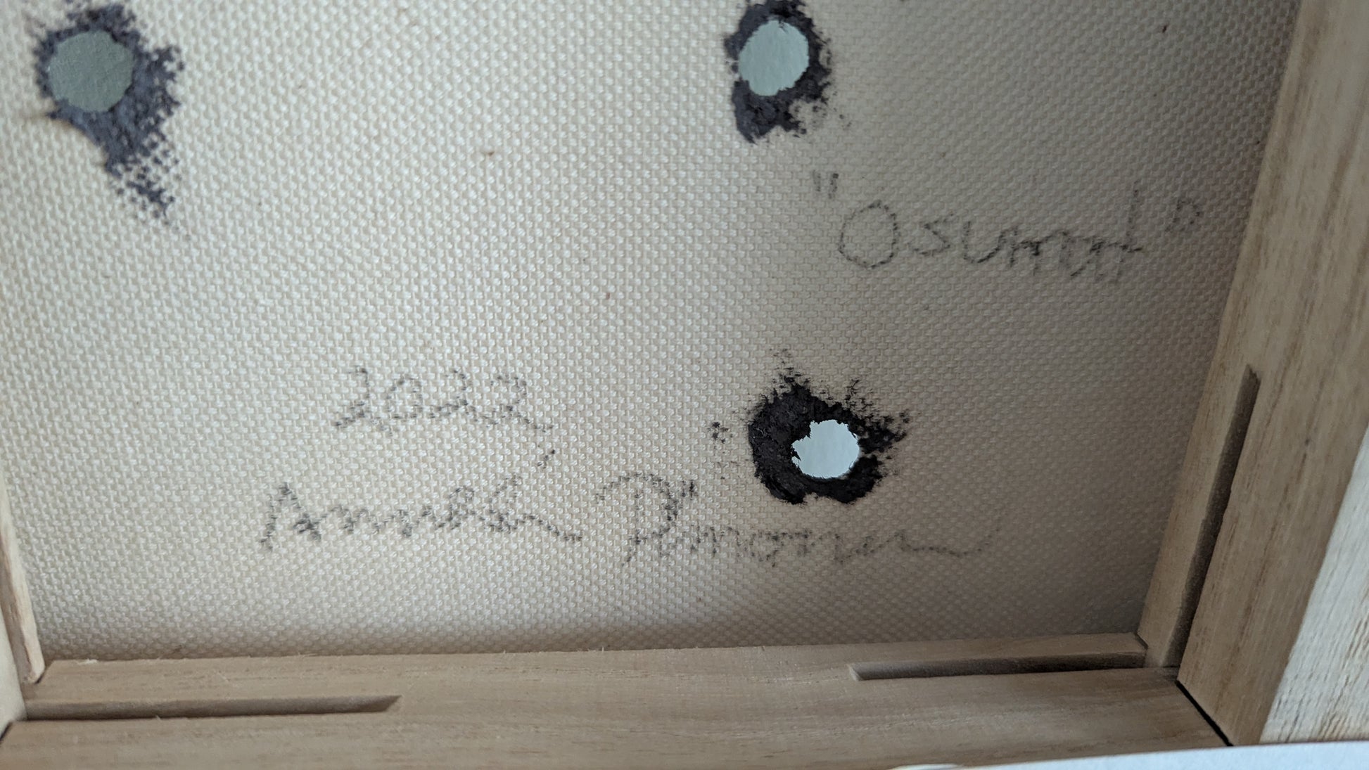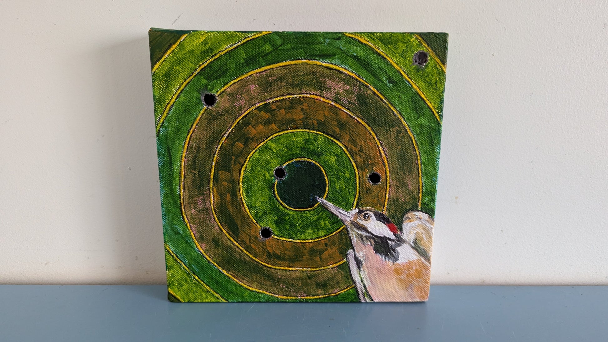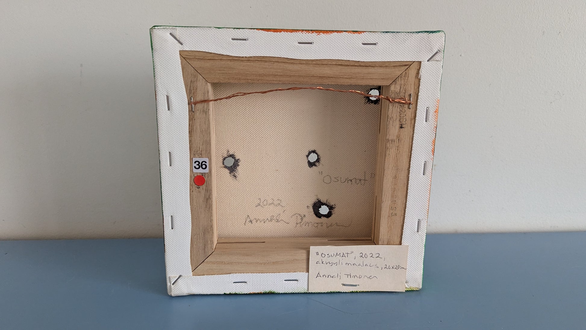 Anneli Timosen signeeraama Osumat niminen akryylityö vuodelta 2022.