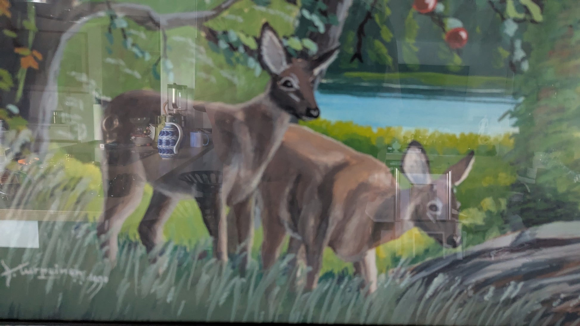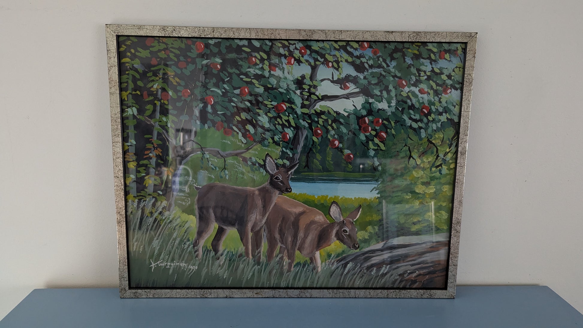 Antero Turpeisen signeeraama kauris aiheinen sekatekniikkatyö vuodelta 1990.