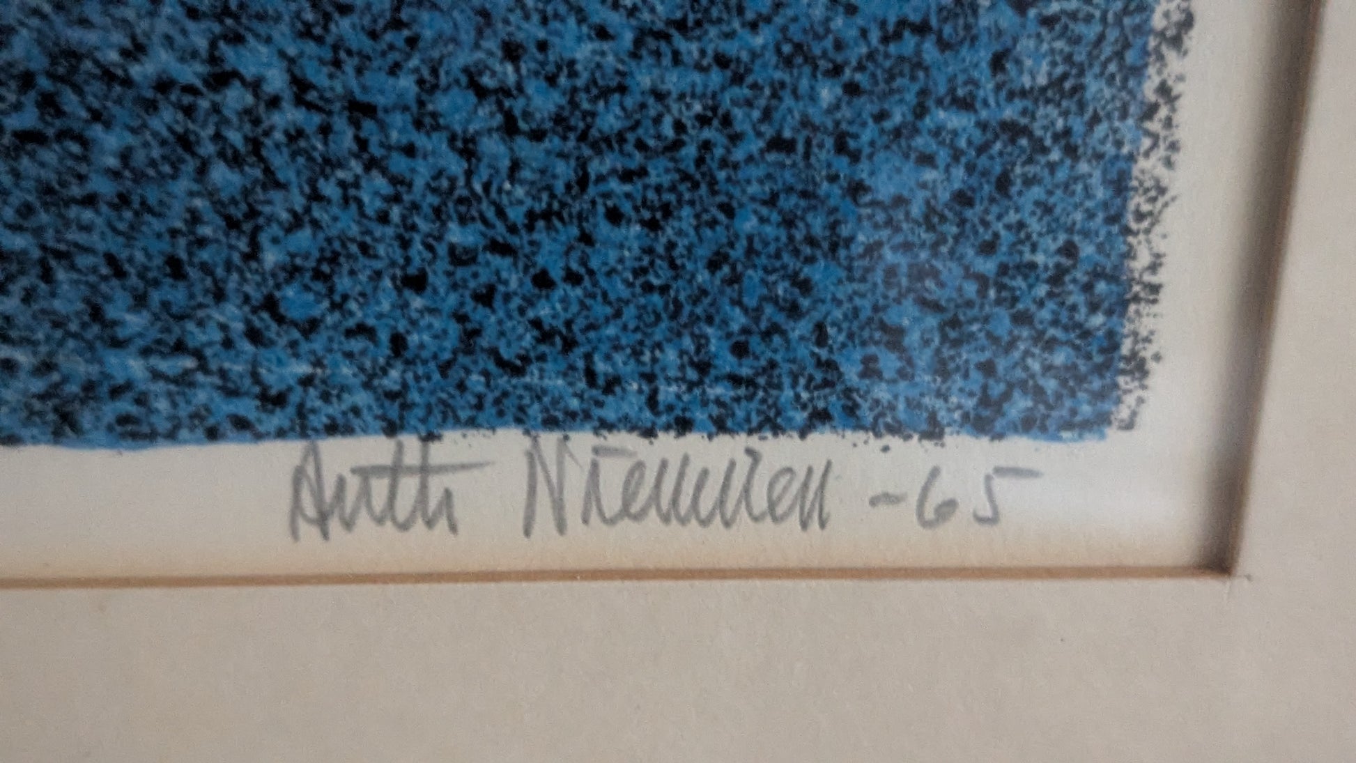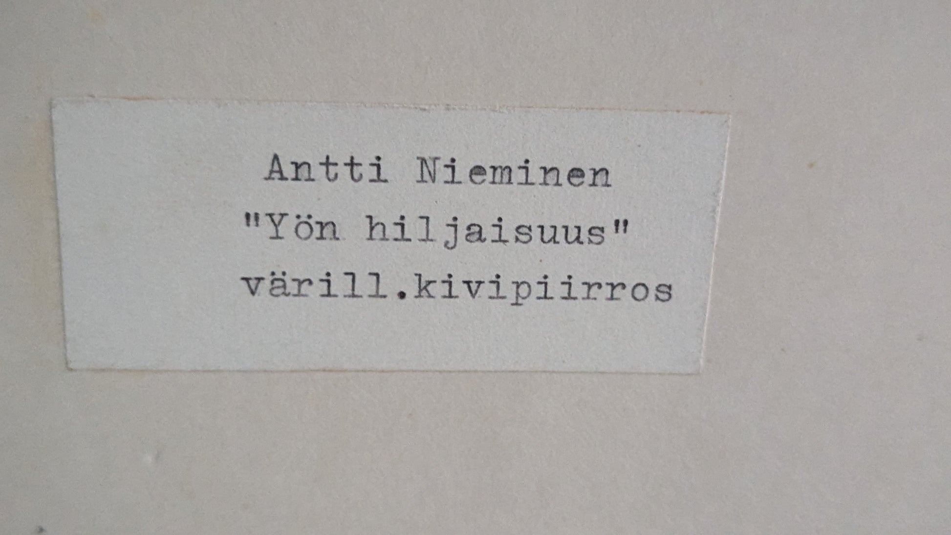 Antti Niemisen signeeraama Yön Hiljaisuus niminen värikivipiirros vuodelta 1965.