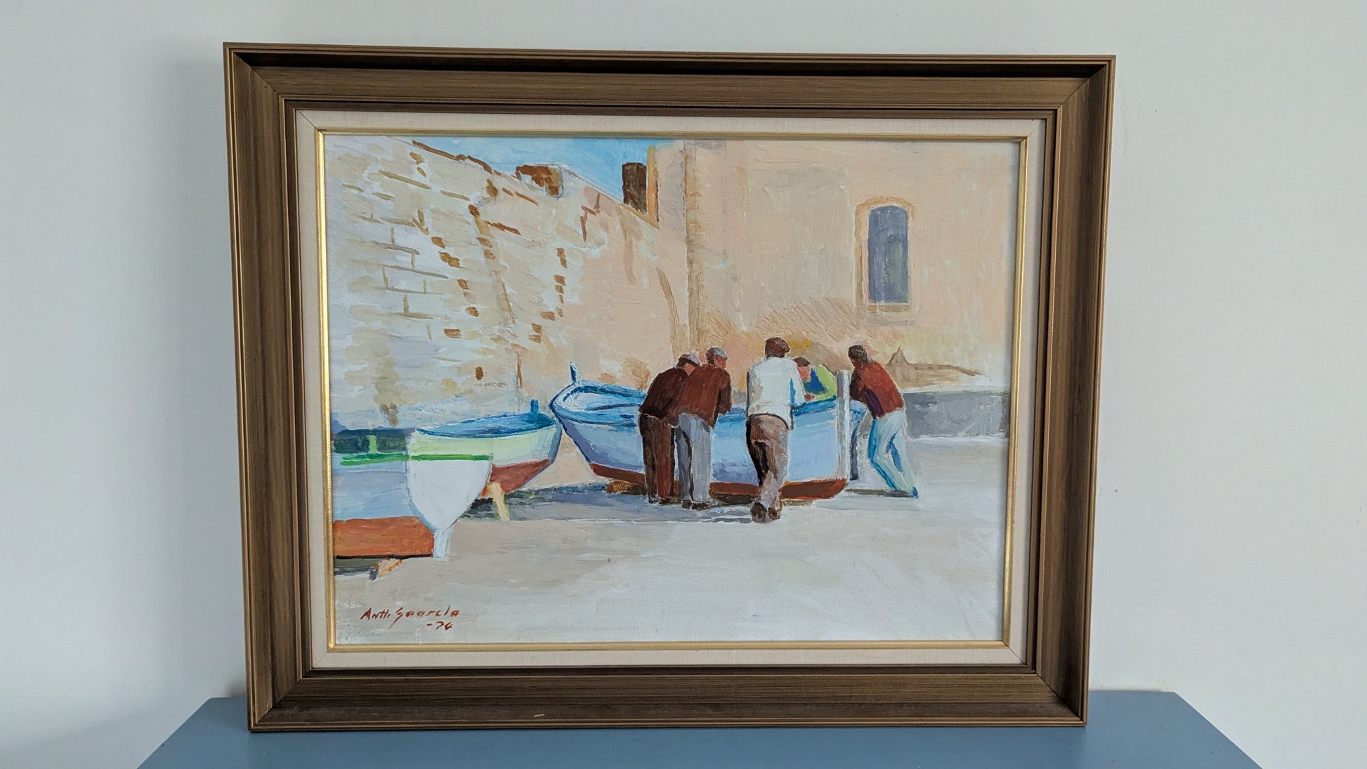 Antti Saarela - Cefalun Kalastajia (Signeerattu Öljyvärimaalaus, 1974)