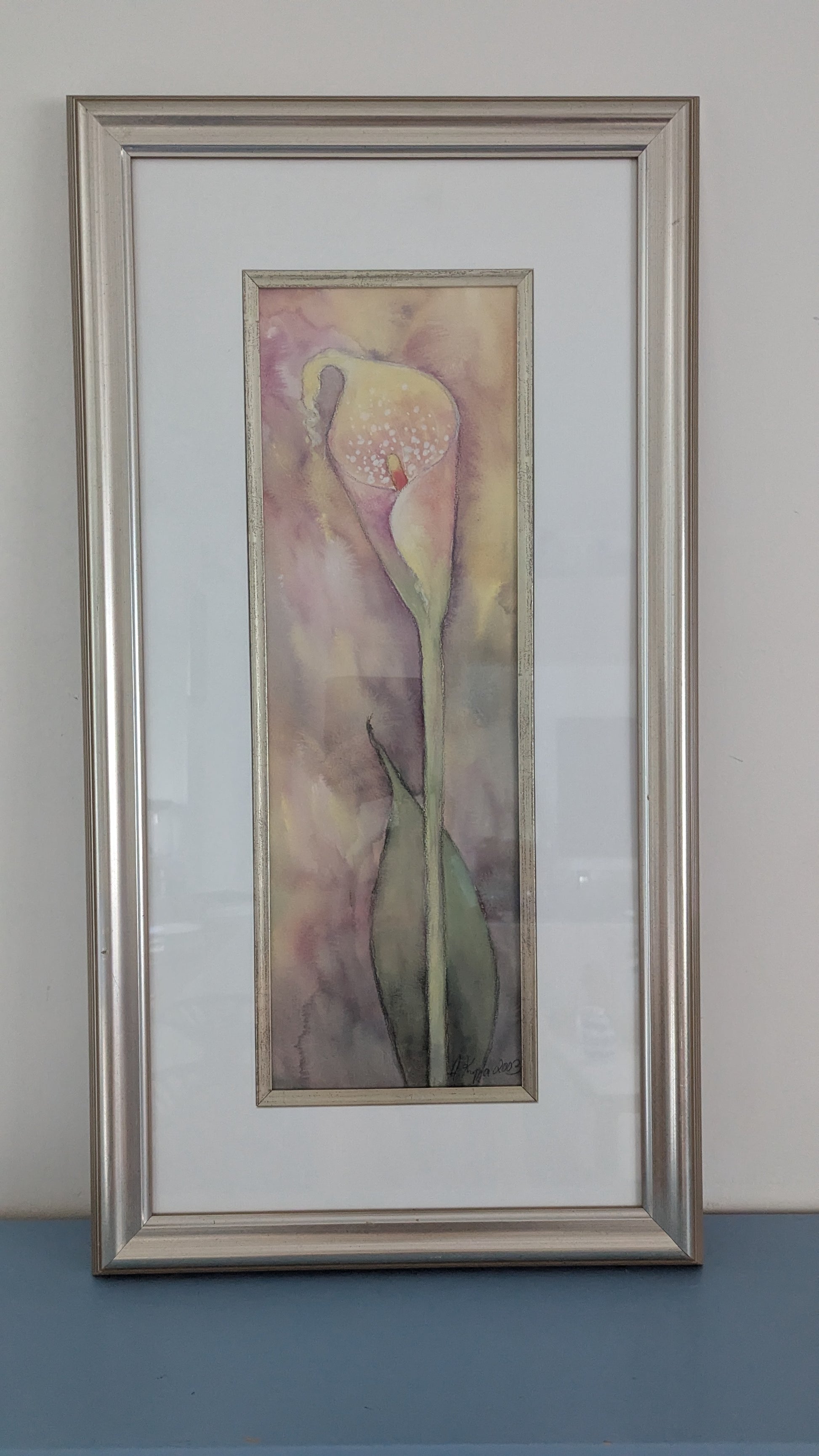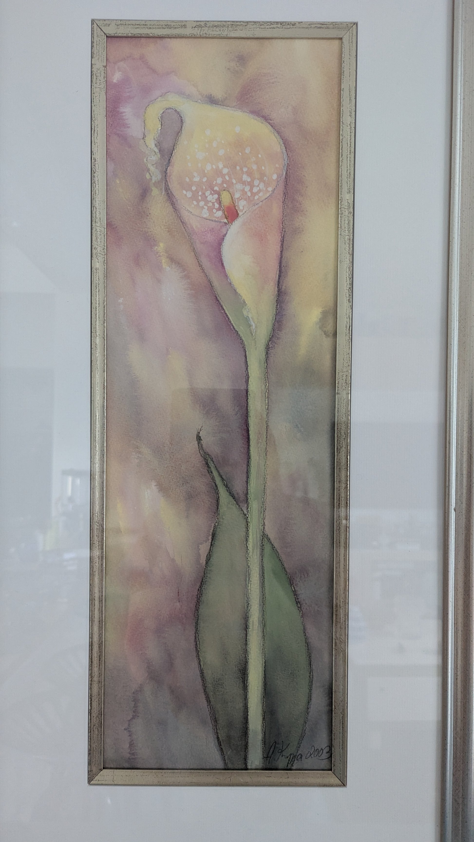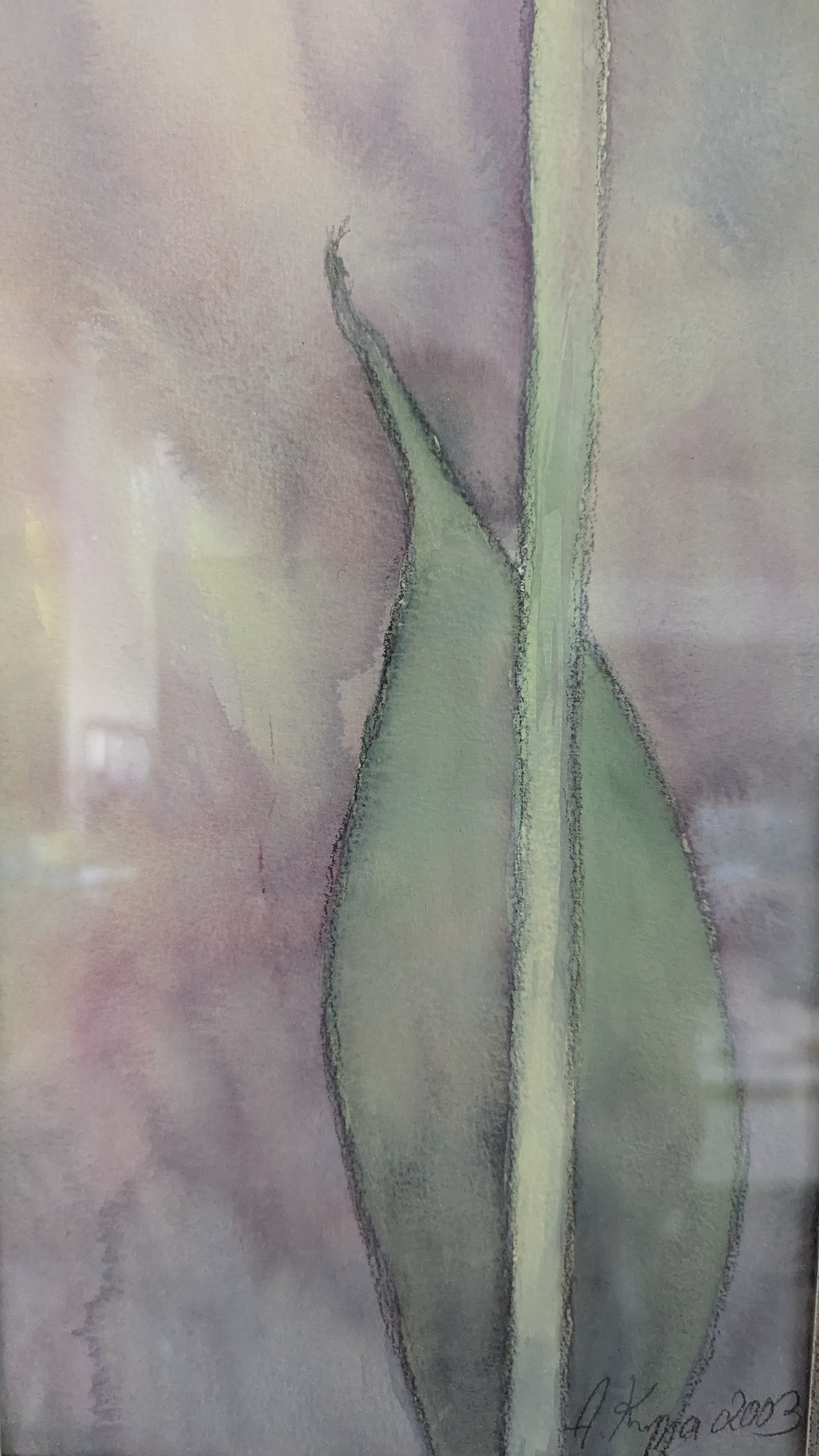 Anu Kurpan signeeraama sekatekniikkatyö vuodelta 2003.