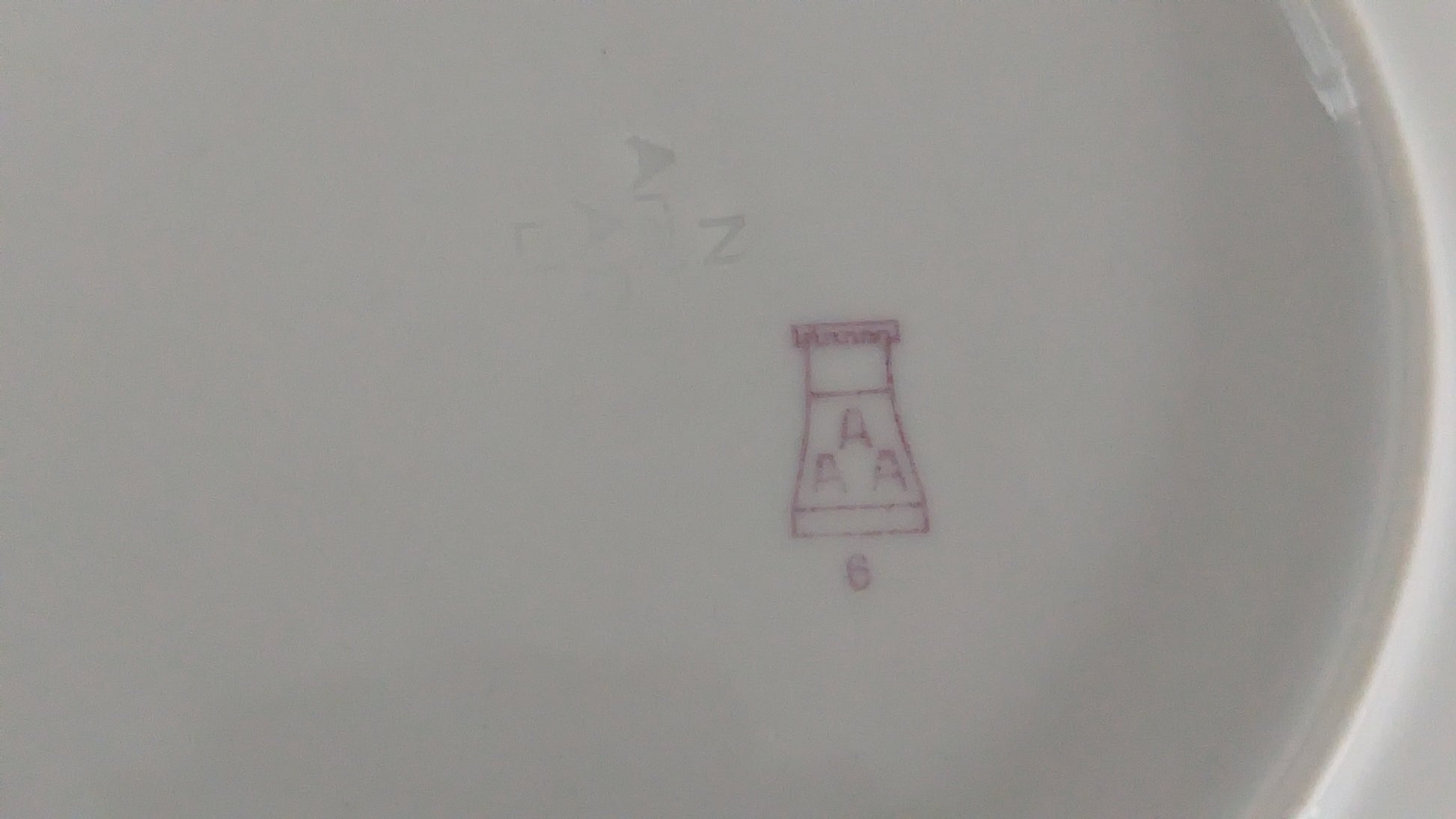 Pohjassa AAA-leima joka oli käytössä 1928-1932. AB-malli taas suunniteltiin vuonna 1930 eli näiden tietojen perusteella tämä vati valmistettu vuosien 1930-1932 välillä.