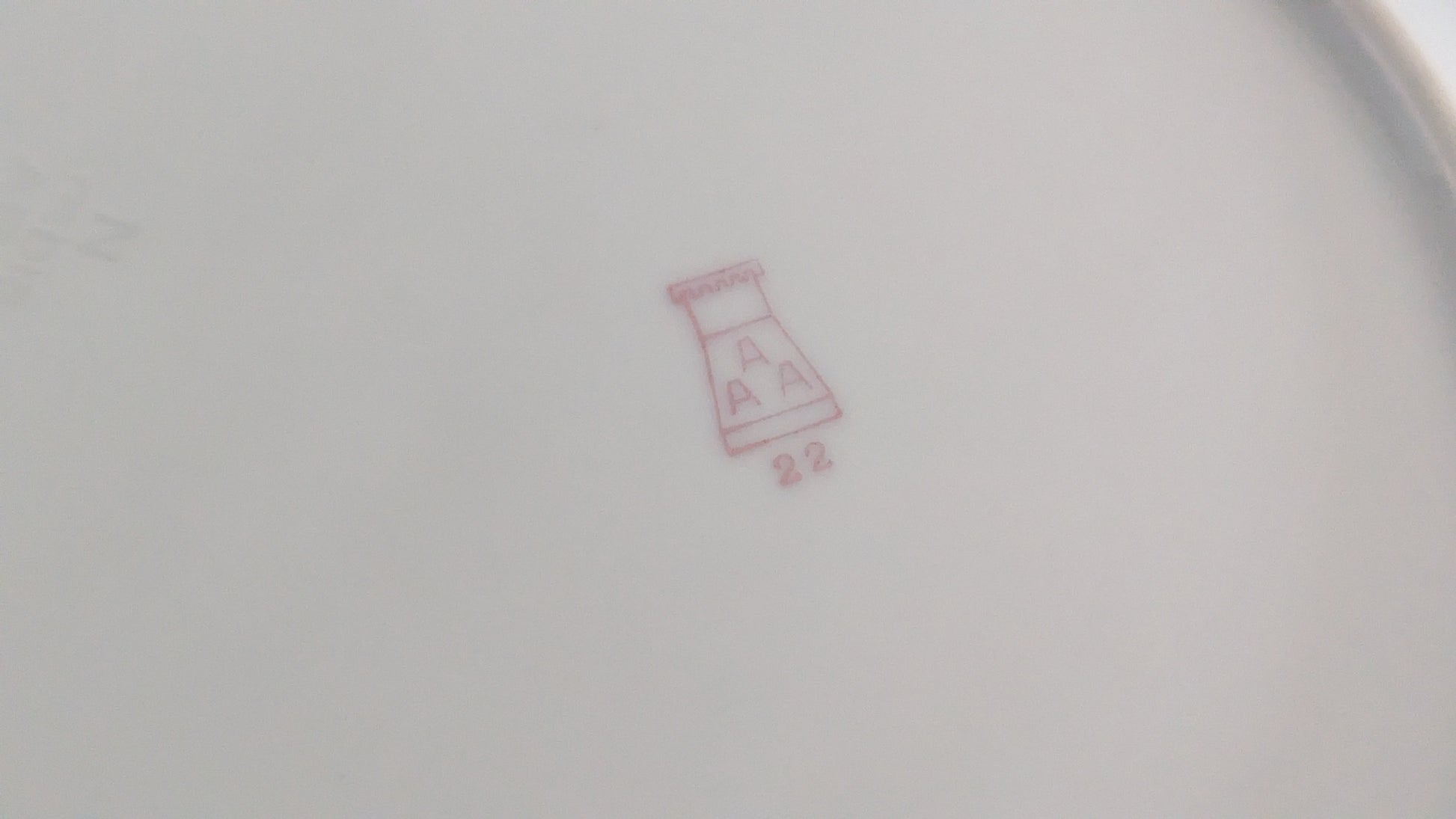 Pohjassa AAA-leima joka oli käytössä 1928-1932. AB-malli taas suunniteltiin vuonna 1930 eli näiden tietojen perusteella tämä vati valmistettu vuosien 1930-1932 välillä.