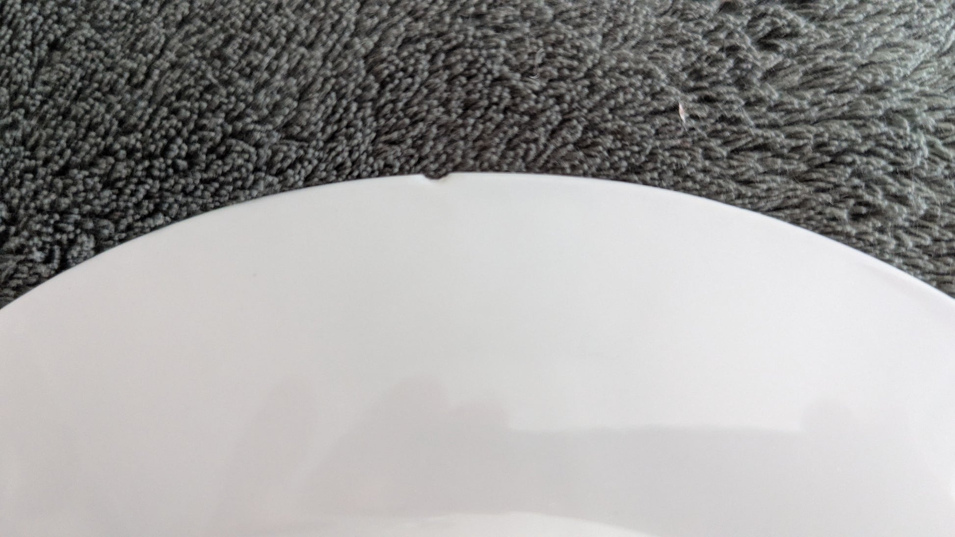 Ei halkeamia. Kahdessa lautasessa kultauksessa kulumaa. Toisessa niistä vielä pieni iskemä reunassa, mikä näkyy viimeisessä kuvassa. Muissa ei iskemiä. Jonkin verran käyttökulumaa.