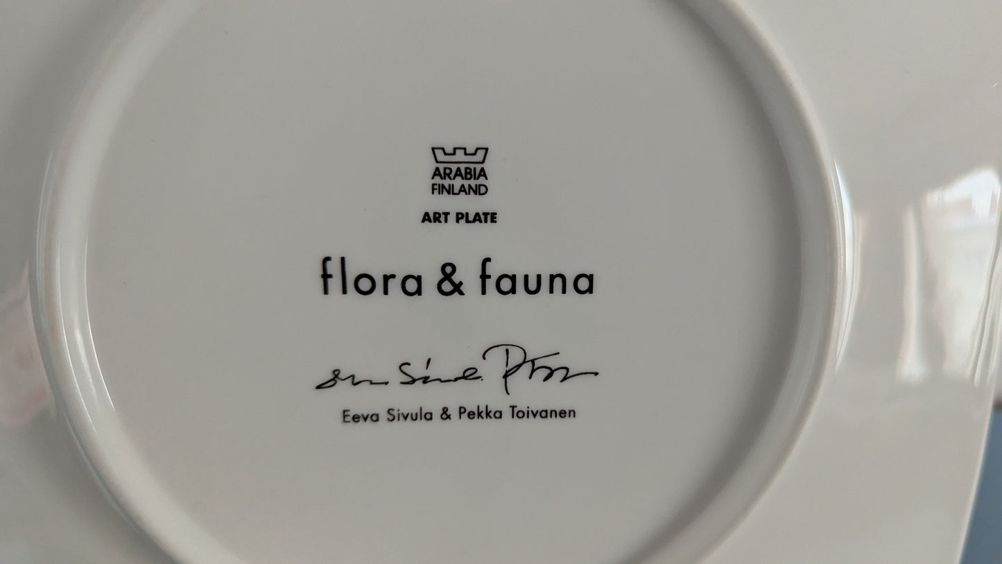 Pohjassa Eeva Sivulan ja Pekka Toivasen signeeraus sekä Flora & Fauna ja Art Plate tekstit.