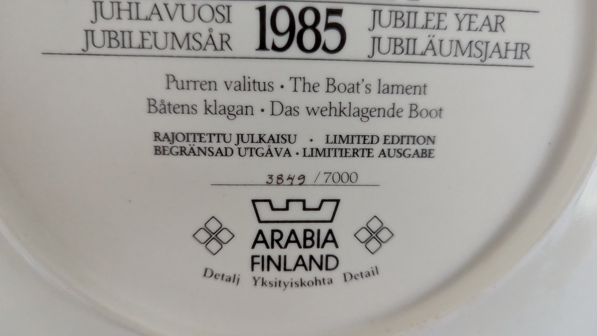 Halkaisijaltaan isompi kuin muut Arabian Kalevala lautaset. Tehty 7000kpl numeroitu erä.