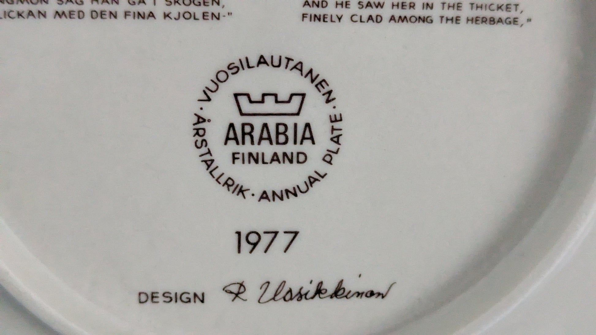 Arabia Kalevala vuosilautanen 1977