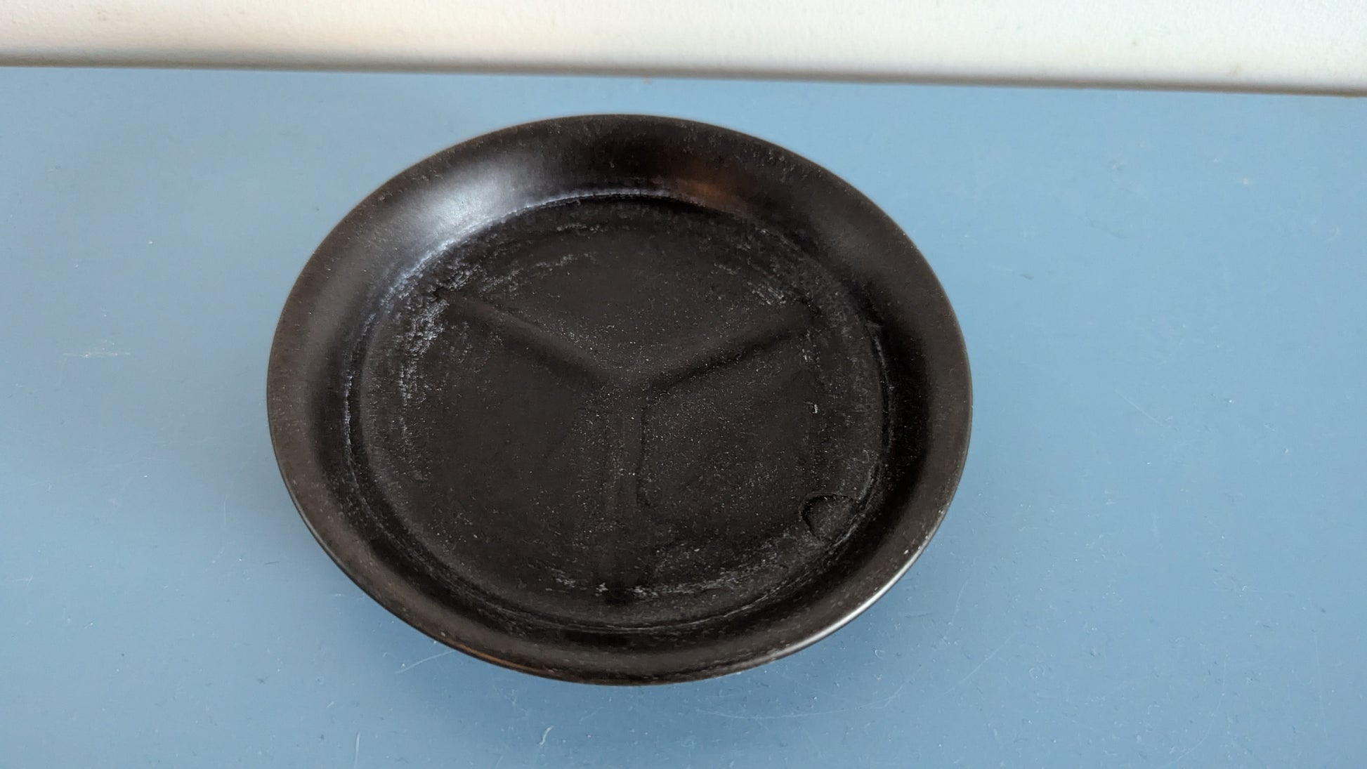 Ei iskemiä tai halkeamia. Kuvan mukaista kalkkeumaa. Arabian leima kulunut pois.