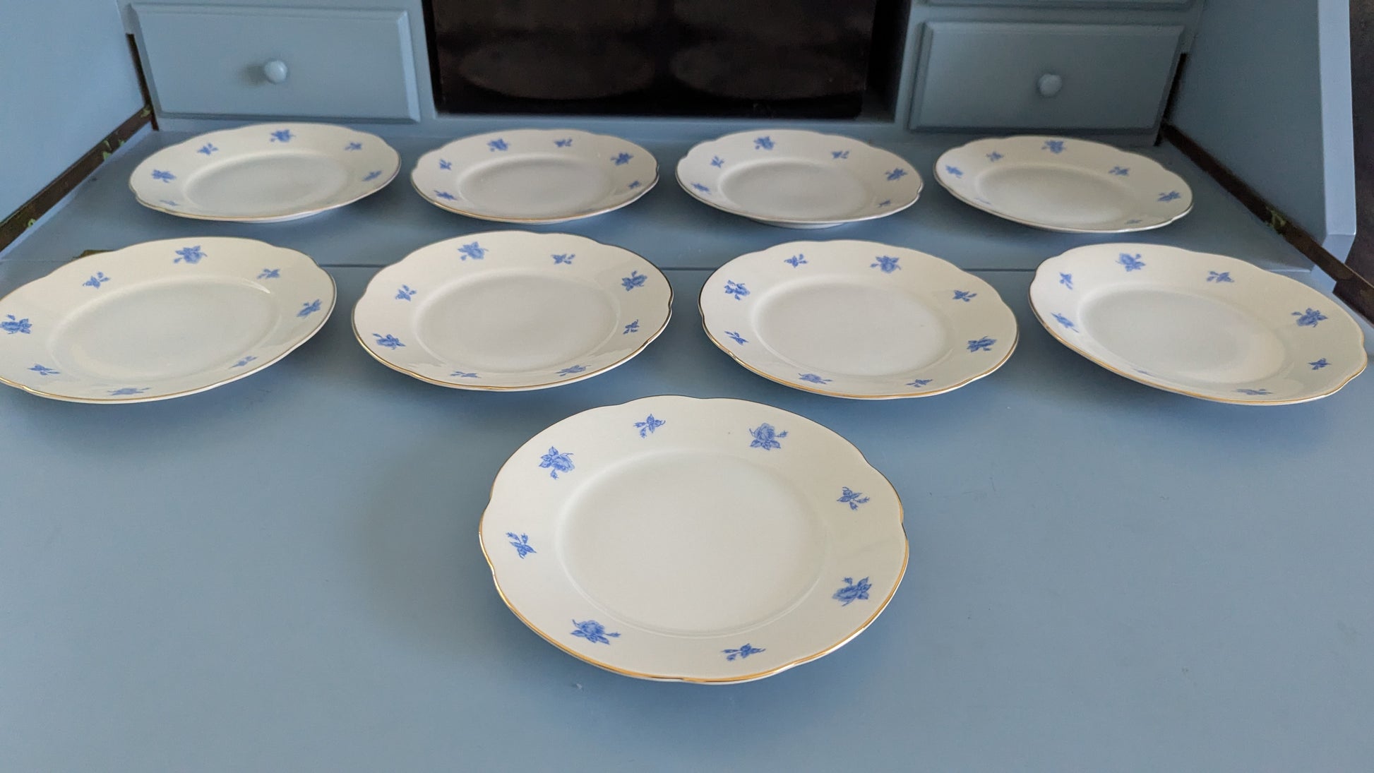Arabia OB-Mallin Sininen Ruusu Koriste Leivoslautanen / Leipälautanen (9kpl)