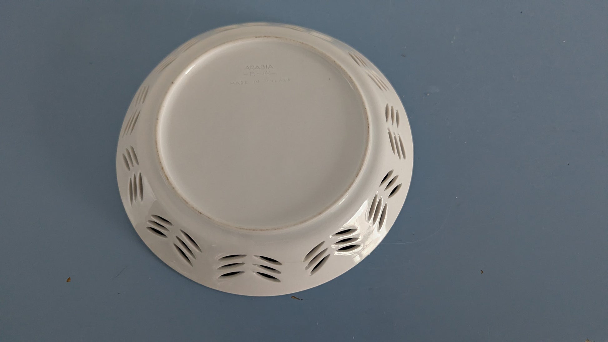 Arabia Oksa Riisiposliini Leivoslautanen (1950-1974, Friedl Holzer-Kjellberg)