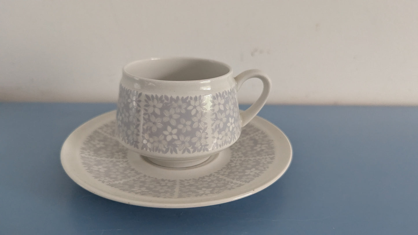 14-osainen Arabian Pitsi kahviastiasto seitsemällä hengelle.