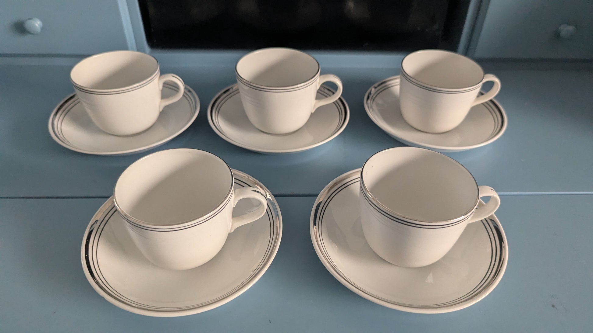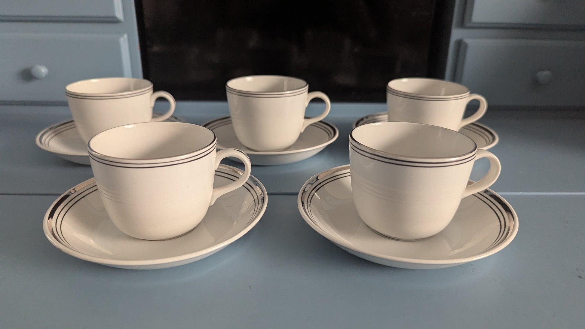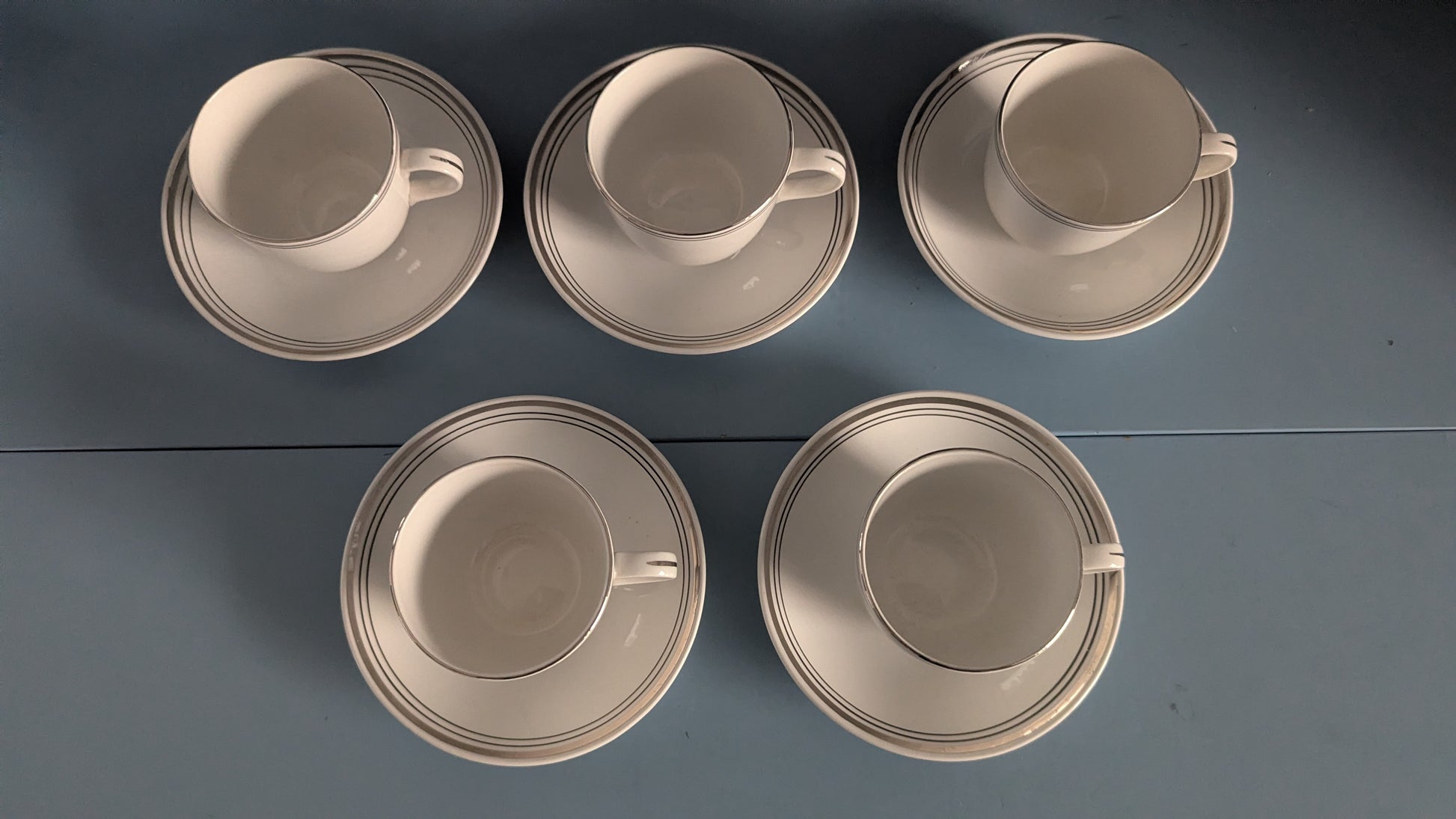 Arabia 10-osainen Platina kahviastiasto viidelle hengelle.