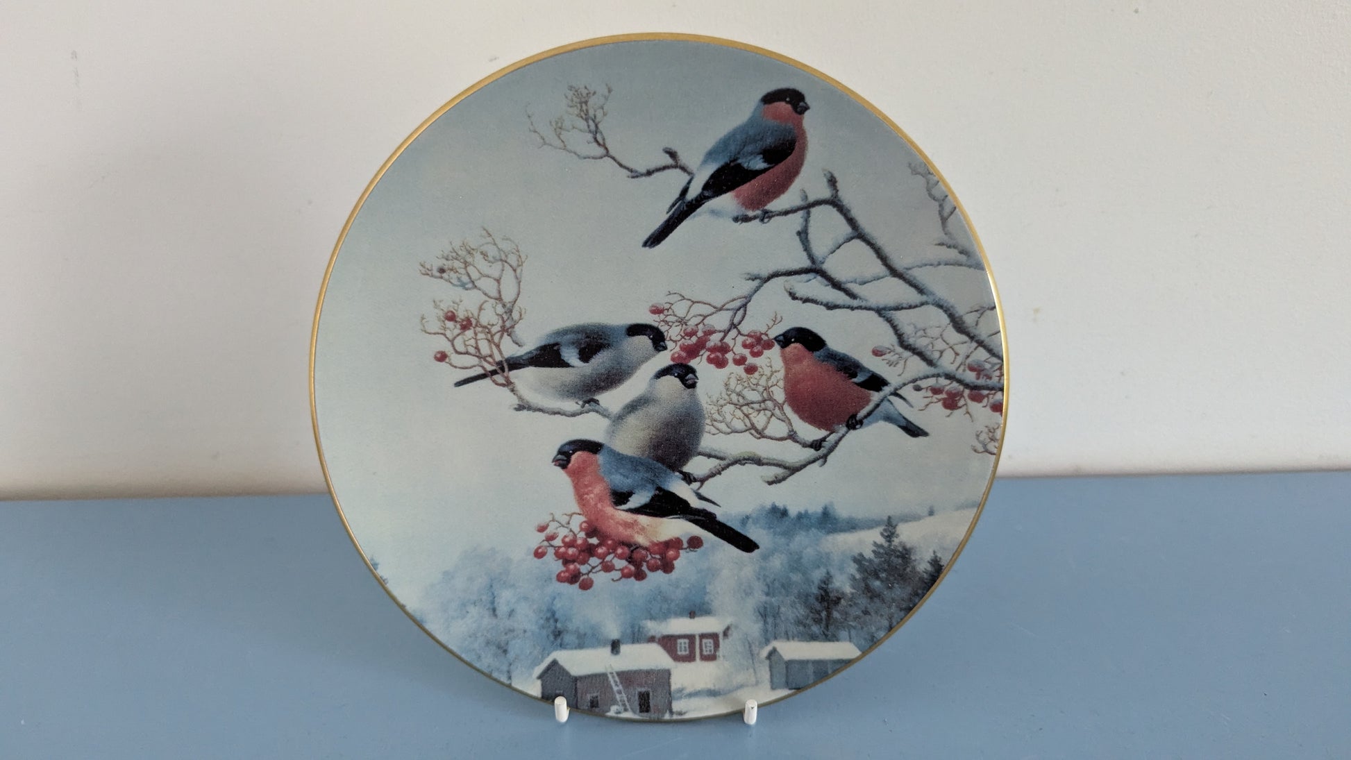 Arabia Punatulkkuja Pihlajassa Seinälautanen Nro 1 (Ferdinand von Wright)