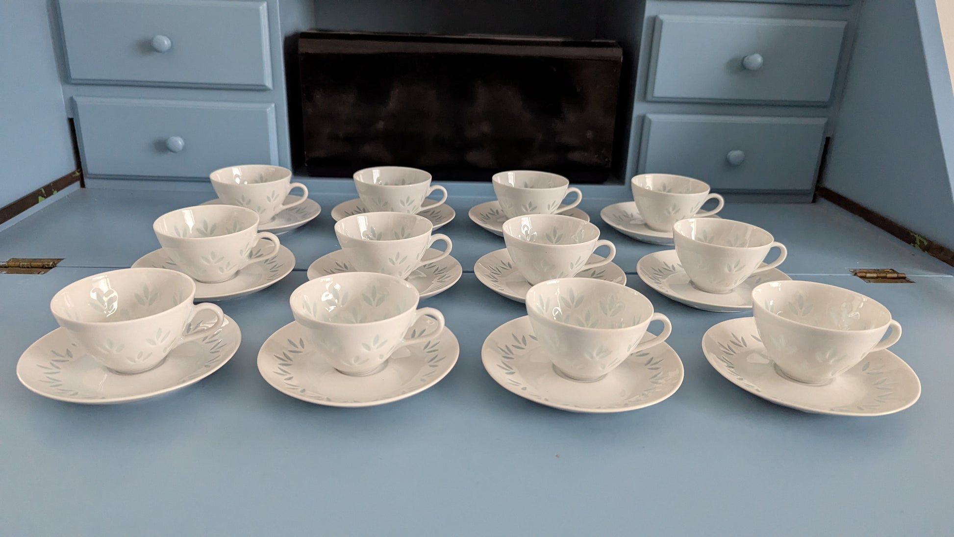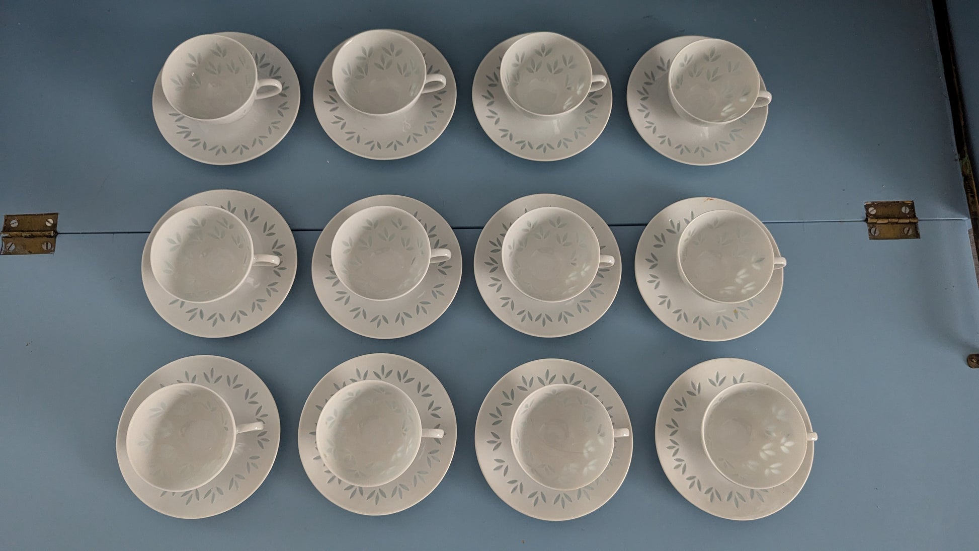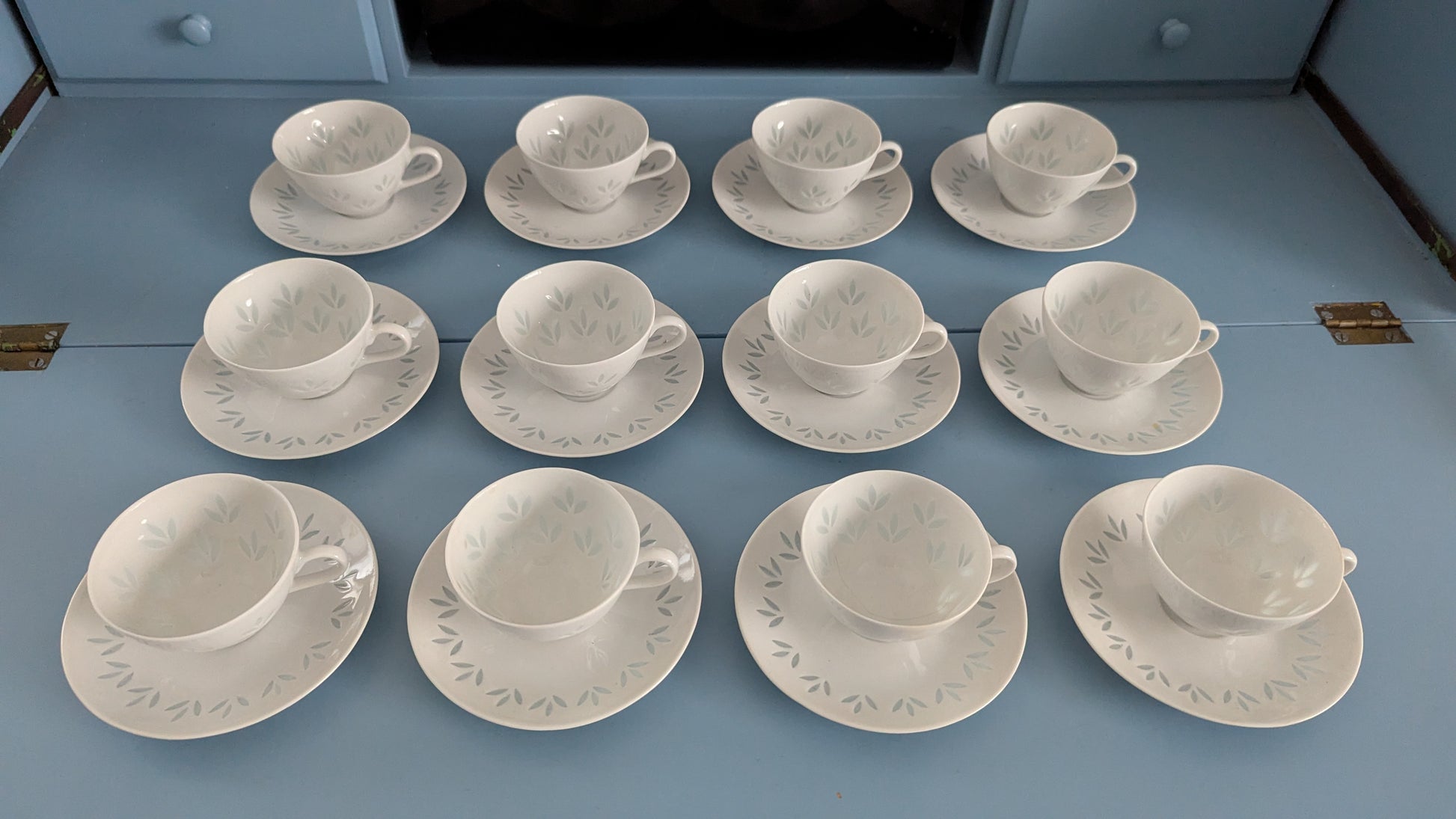 Huom! Kuvassa astiasto 12-hengelle. Yksi kuppi ja lautanen lisätty myyntiin jälkeen ja sitä ei näy kuvassa.