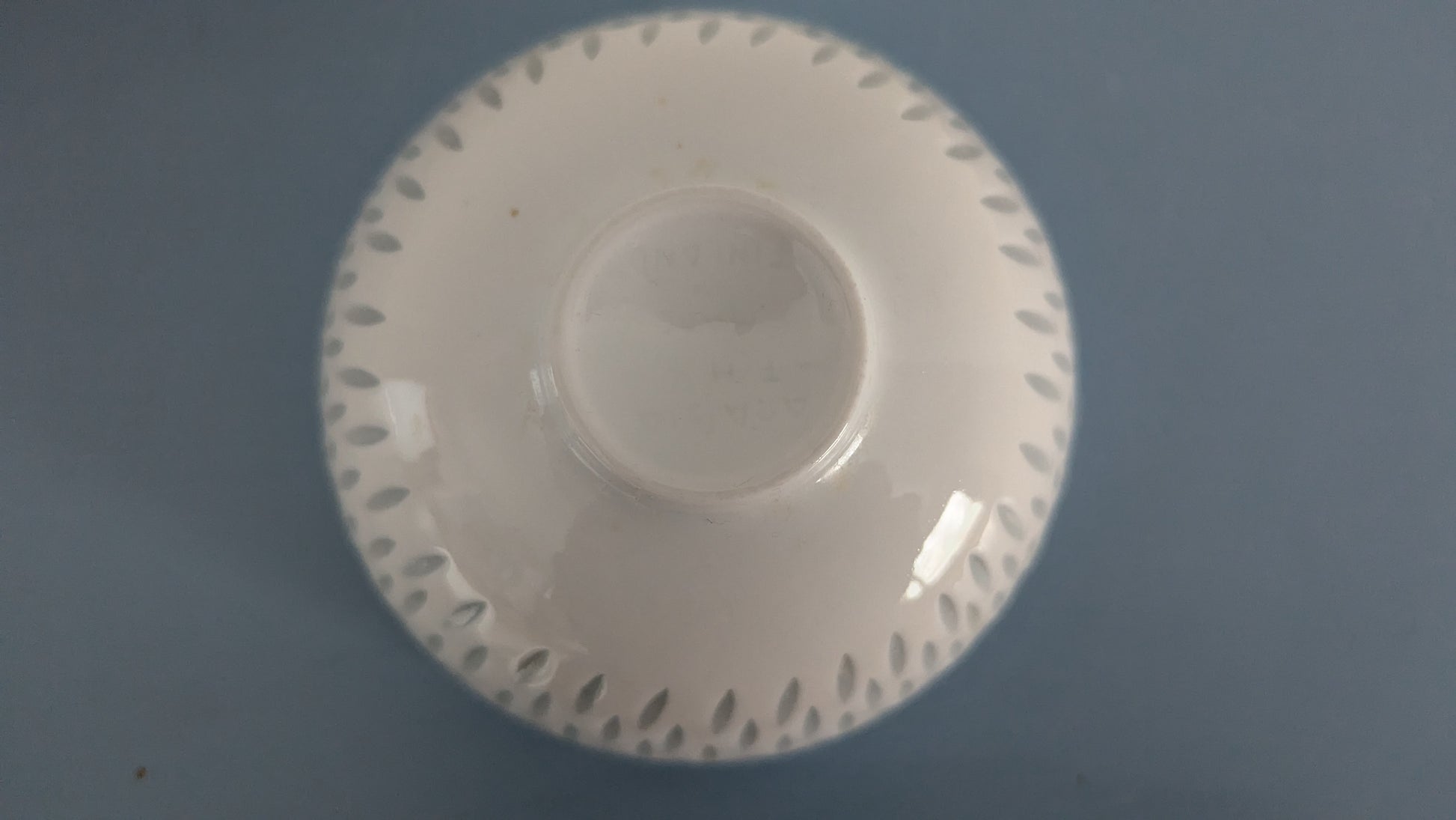 Friedl Holzer-Kjellbergin riisiposliinisia FK-mallin astioita tehtiin usealla eri kuviomallilla. Tämä on mallia Säde.