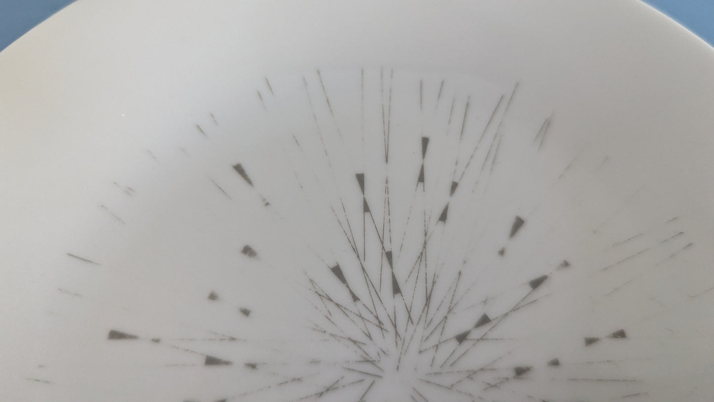 Ei iskemiä, halkeamia tai naarmuja mutta koristeessa kulumaa.