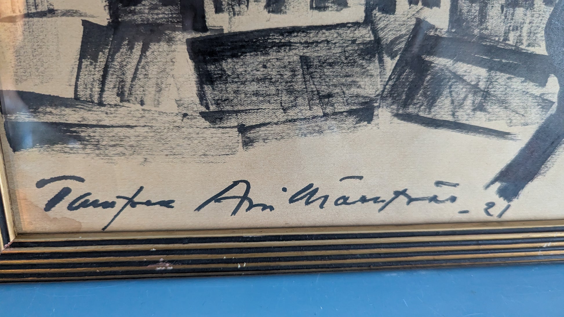 Arvi Mäenpään signeeraama tussityö vuodelta 1921.