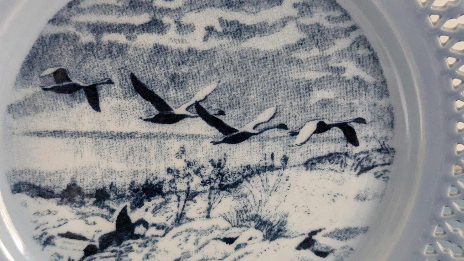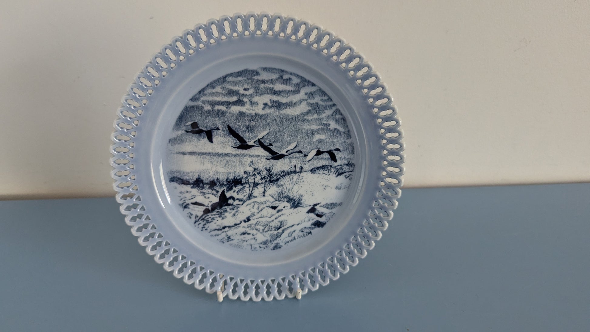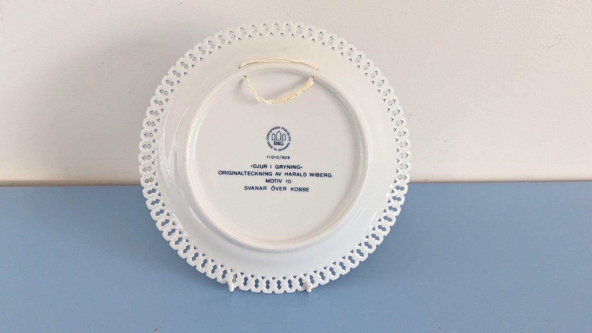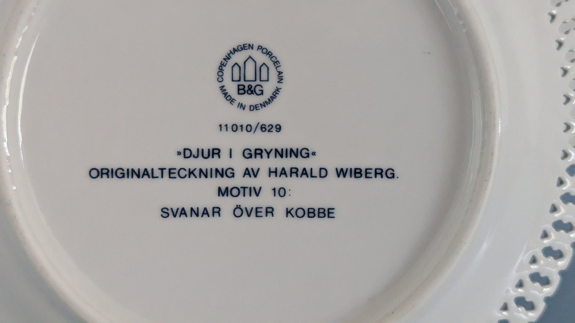 Bing & Grondahl Eläimiä Aamunkoitteessa - Joutsenia Luodon Yllä Seinälautanen