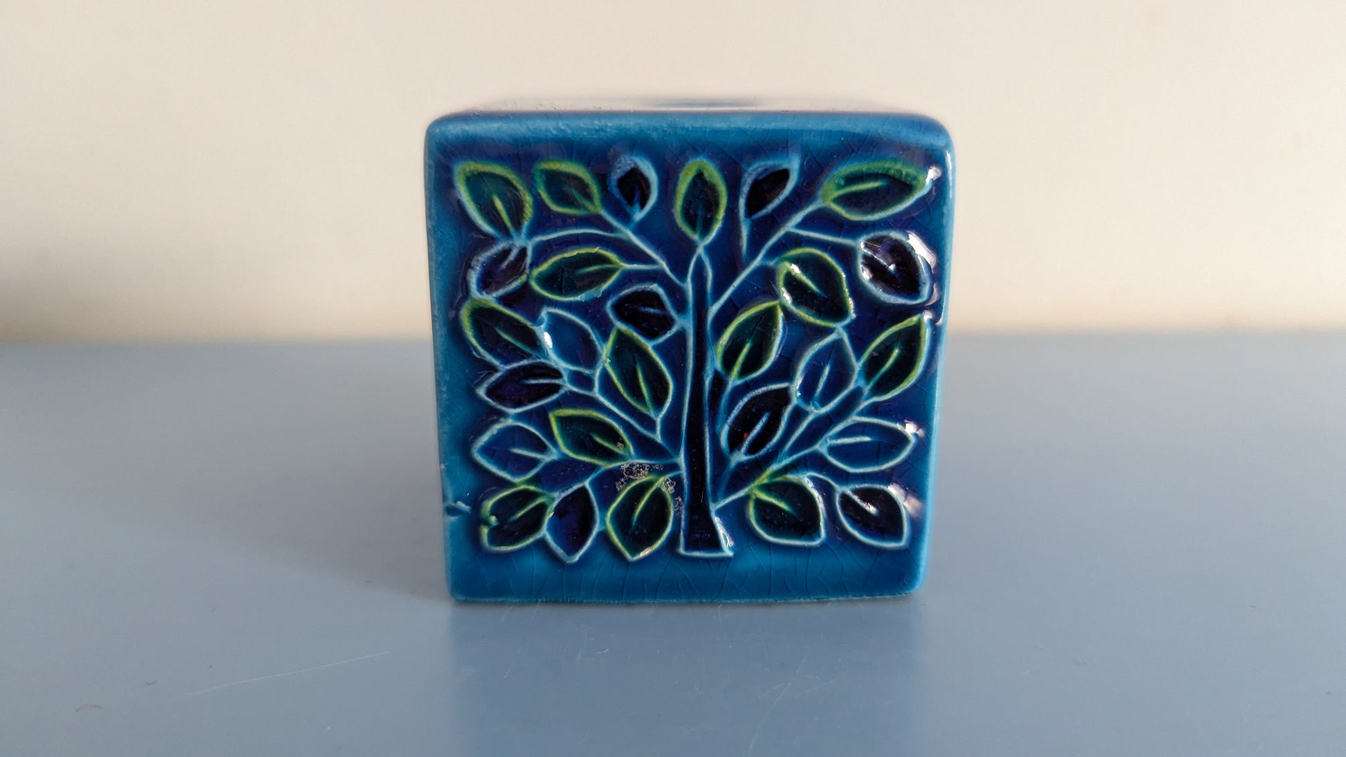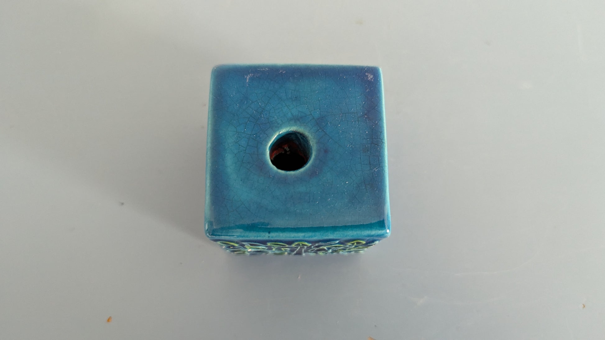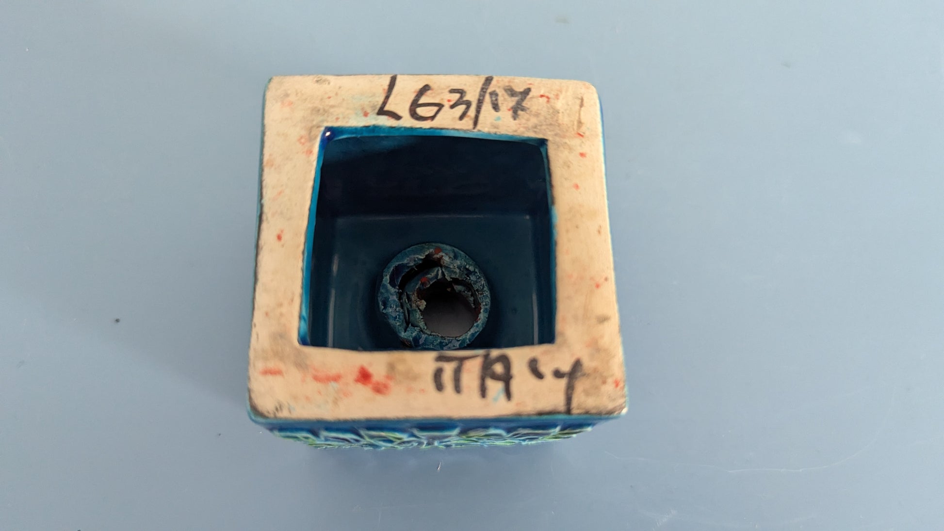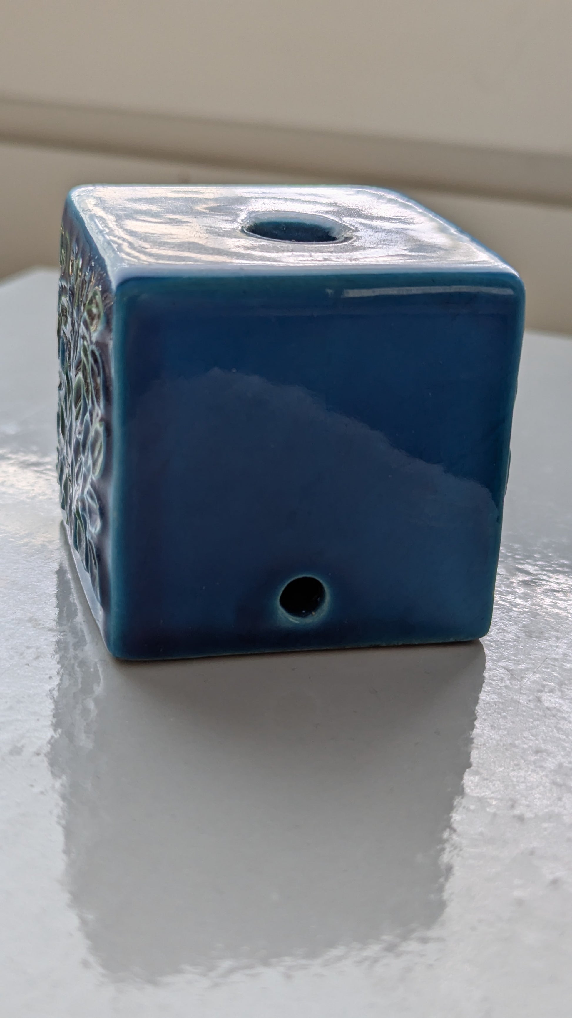 Mitä ilmeisemmin kynttilänjalka. Ei tietoa mikä muukaan olisi tämän käyttötarkoitus. Edessä ja takana Aldo Londin suunnittelema Tree of Life koristekuvio. Yläpuolella 1.8cm reikä johon menisi enkelikynttilä. Pohjassa tussilla teksti Italy LG 3/17. Se mikä ihmetyttää on viimeisessä kuvassa näkyvä reikä. Mitä tarkoitusta varten se on? Onko tämä tarkoitettu kiinnitettäväksi siitä esim. ruuvilla seinään? Silloin koristekuviot jäisivät sivulle.