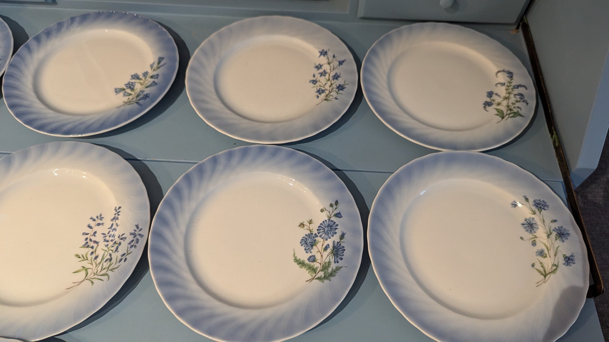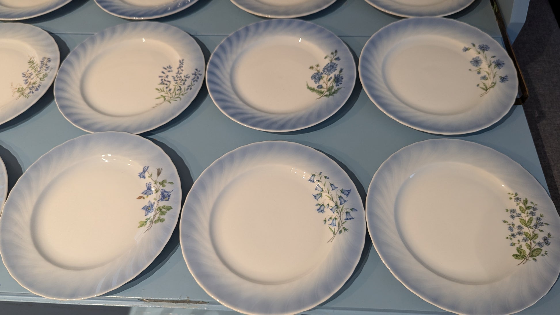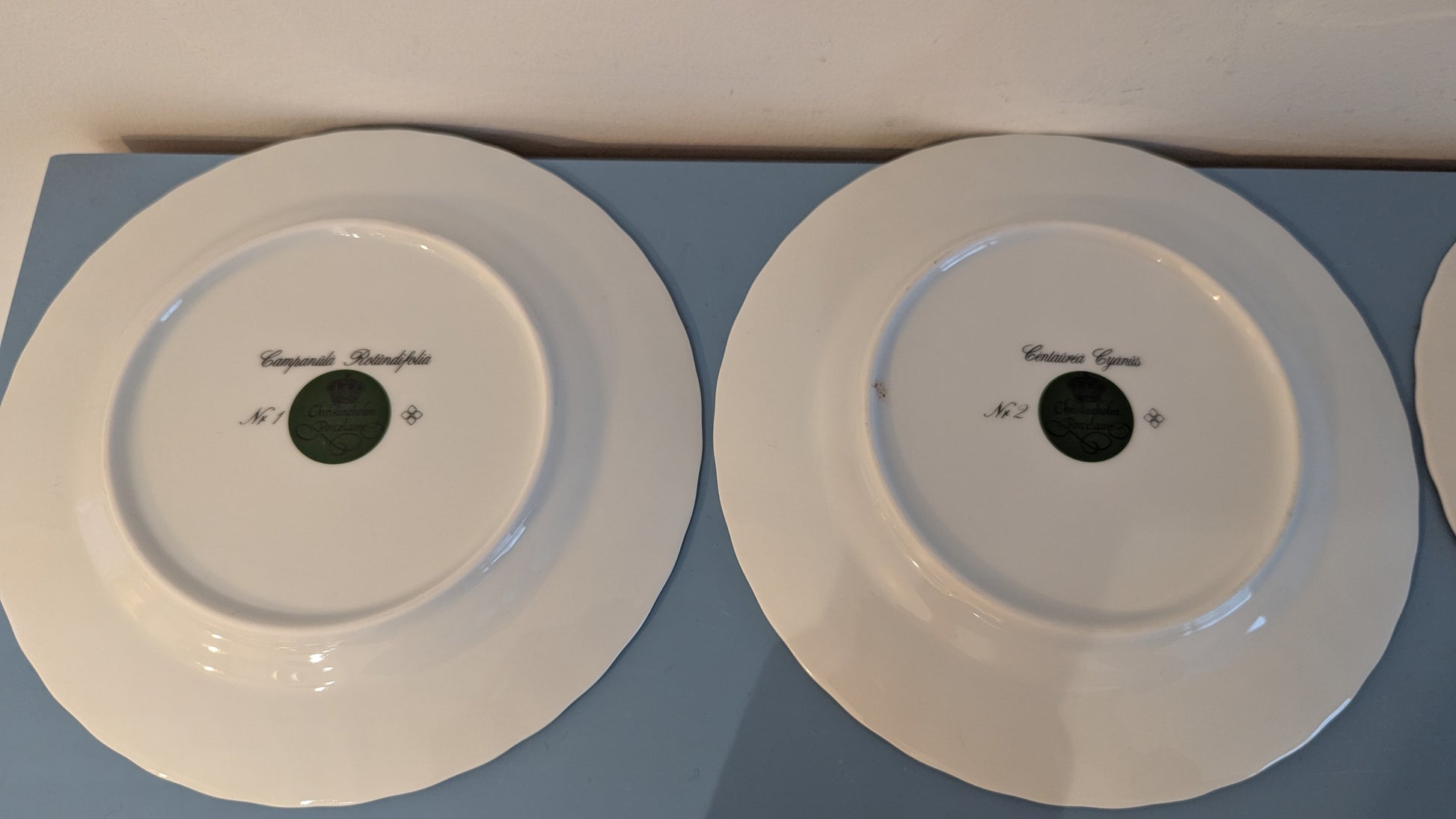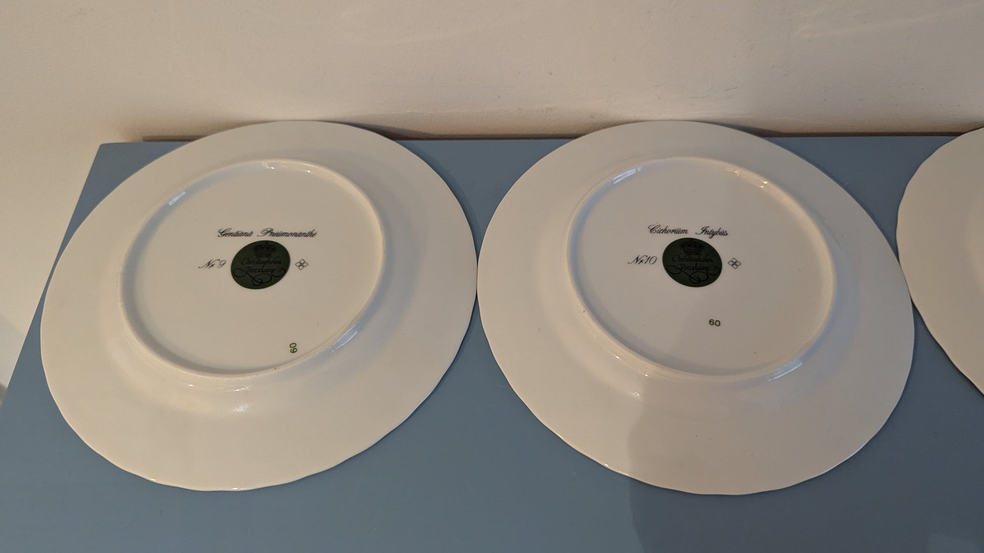 Sarjaa tehty 12 erilaisella kukalla. Nämä lautaset kaikilla eri kuvioilla eli kyseessä koko sarja.