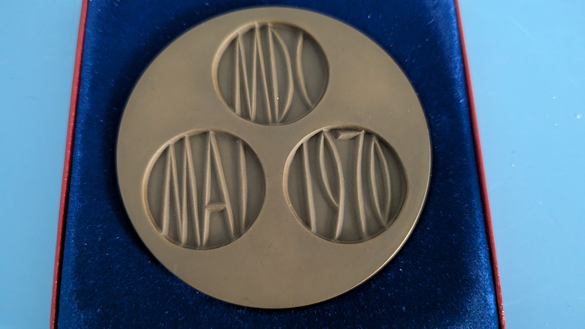 Kääntöpuolella teksti MDC MAI 1970. MDC on lyhenne Mint Directors Conference eli Rahapajojen johtajien konferenssi.