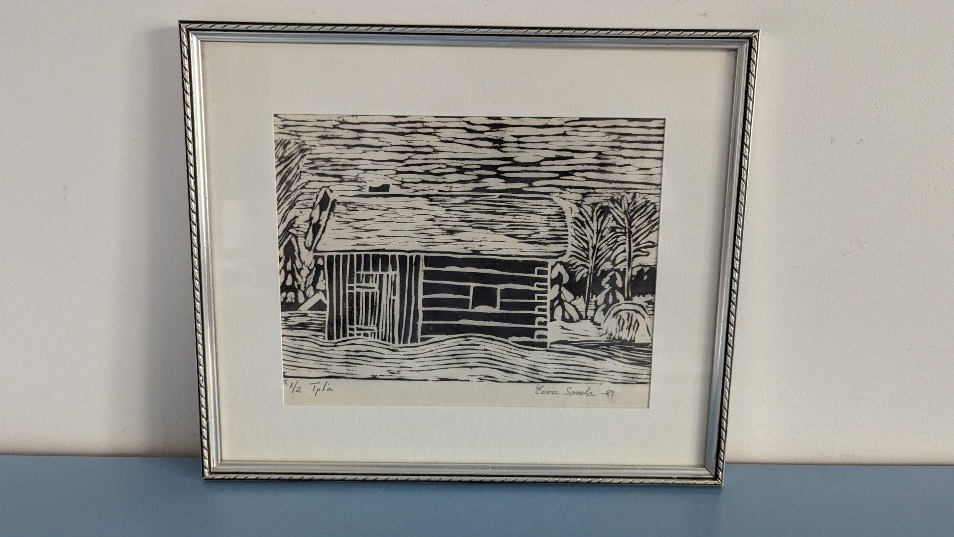 Eeva Savelan signeeraama puupiirros vuodelta 1981.