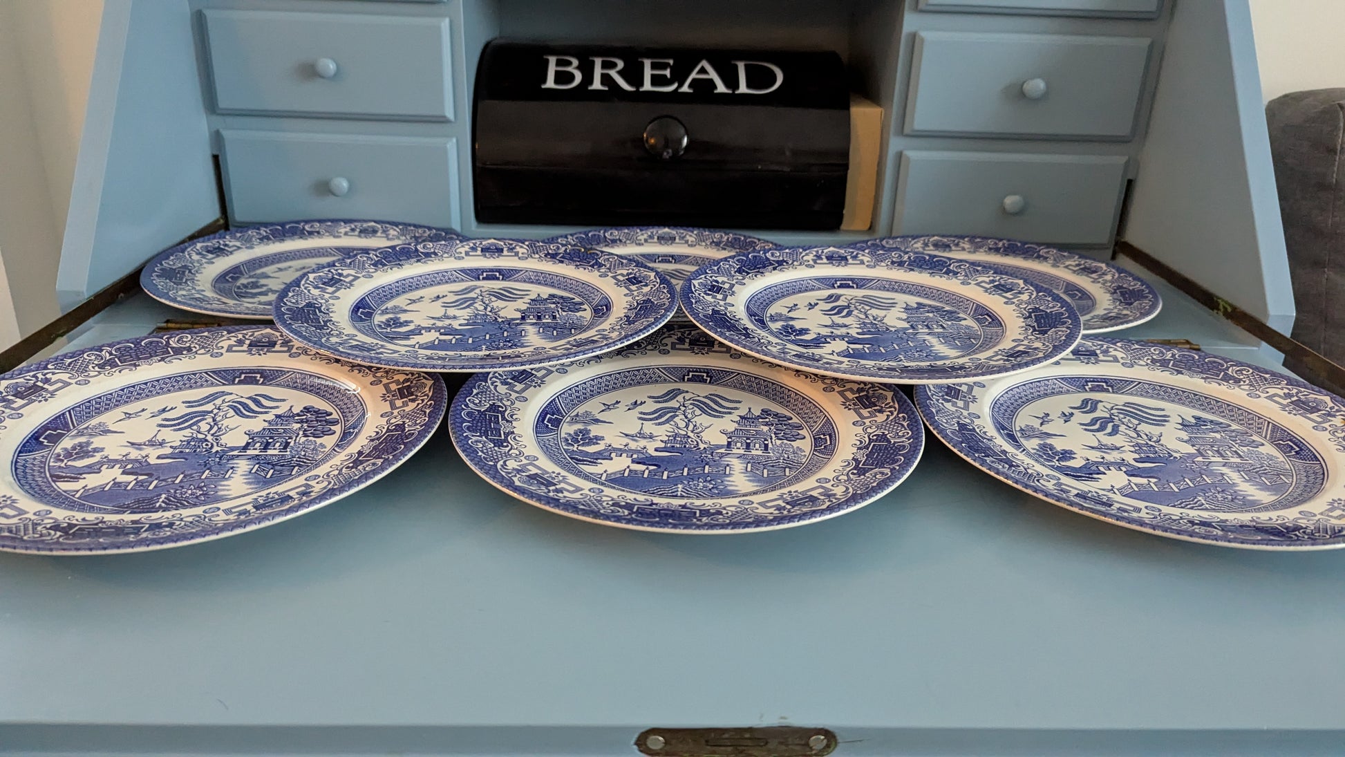English Ironstone Pottery - Old Willow Ruokalautanen (8kpl, 1970-1973)