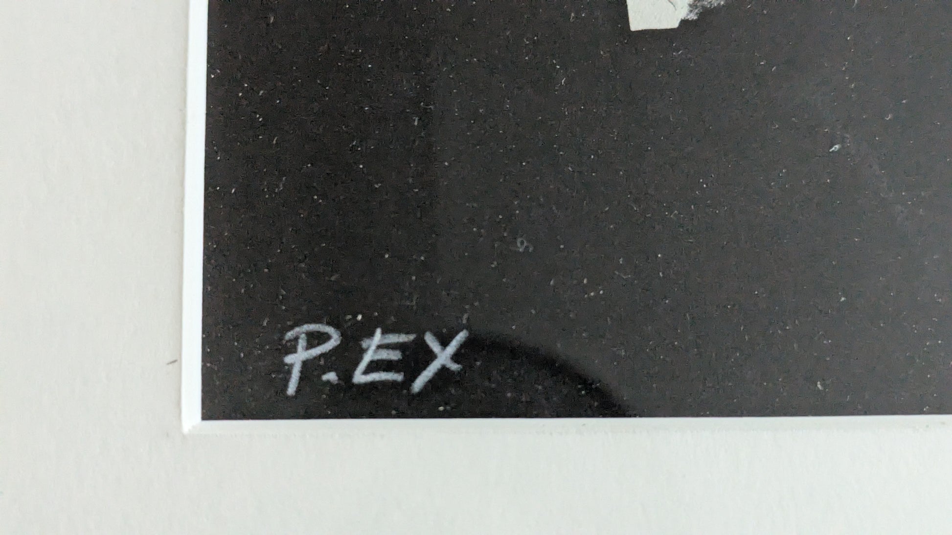 Teoksen alla vedosmerkintä P.EX eli kyseessä ilmeisesti koevedos. Lisäksi taiteilijan signeeraus ja vuosiluku 1998.