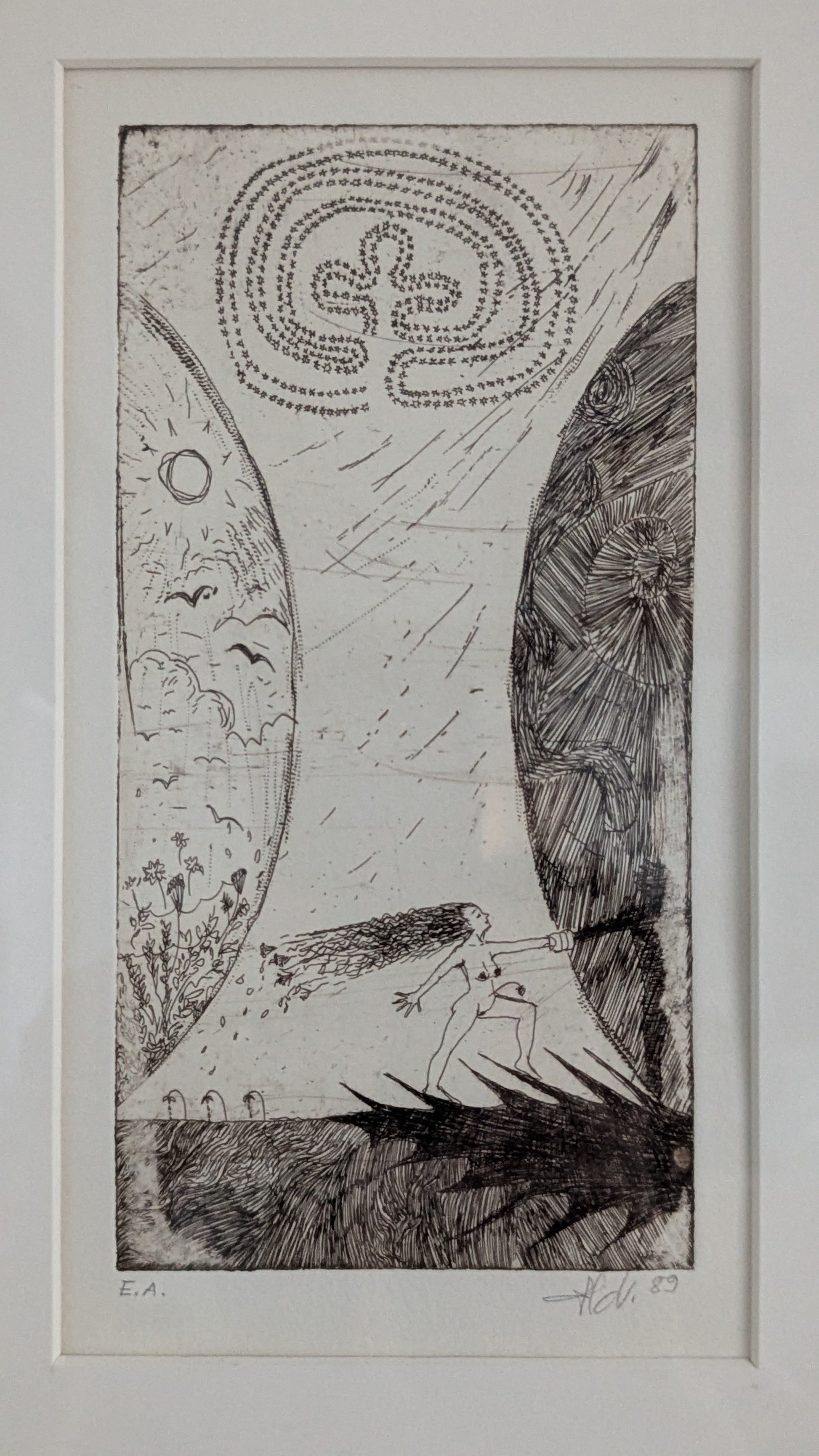 Hanna Variksen signeeraama etsaus vuodelta 1989.