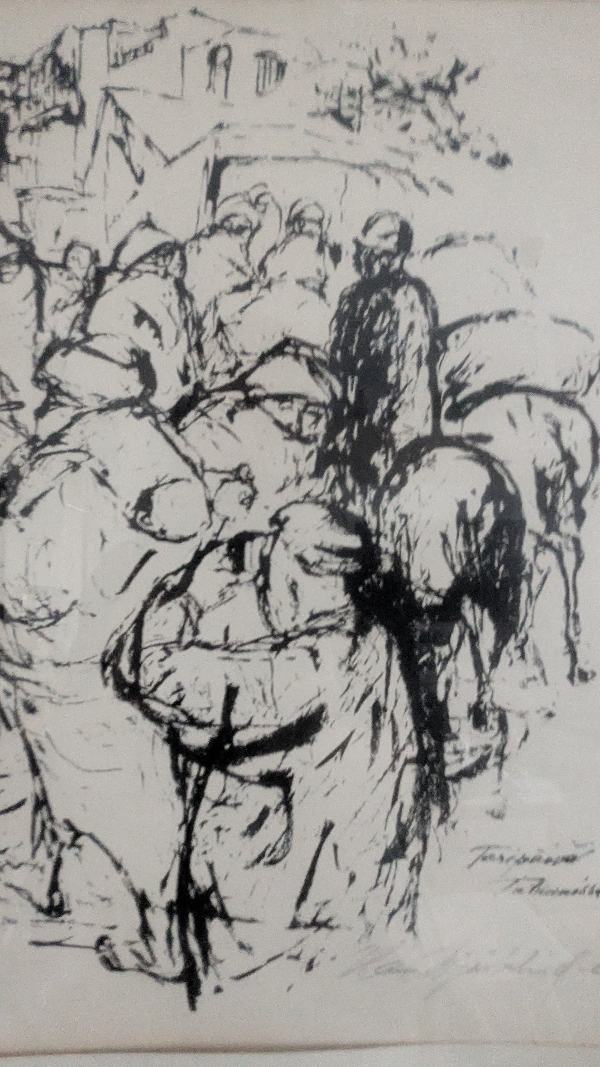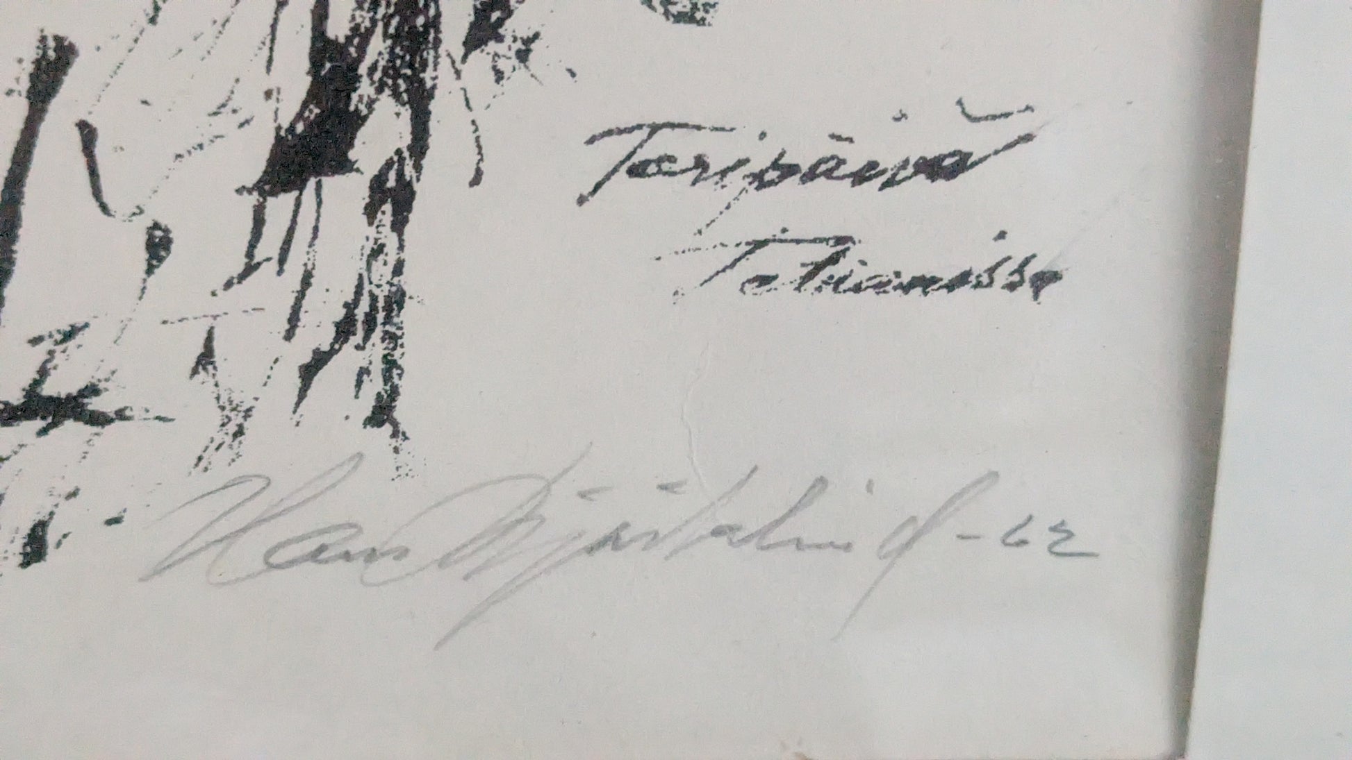 Hans Björklindin signeeraama grafiikka vuodelta 1962. Signeerauksen yläpuolelta löytyy teoksen nimi joka on Toripäivä lisäksi paikan nimi mutta siitä ei saa selvää että missä nämä toripäivät ovat.