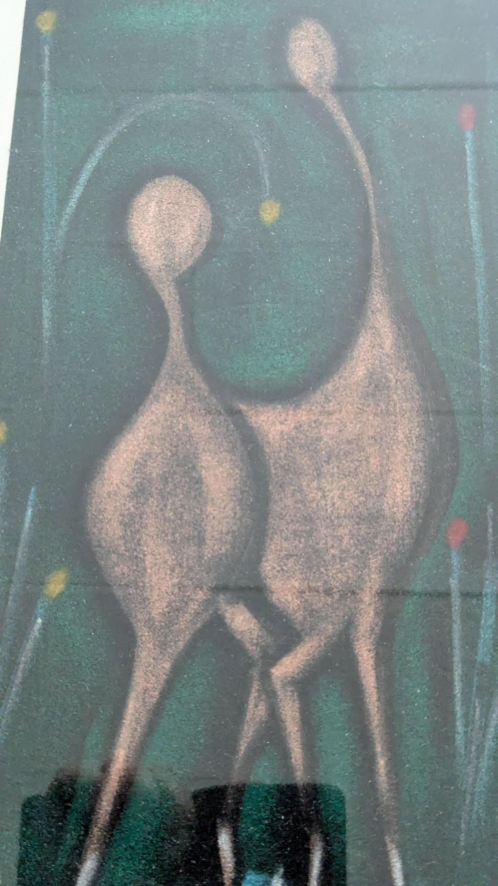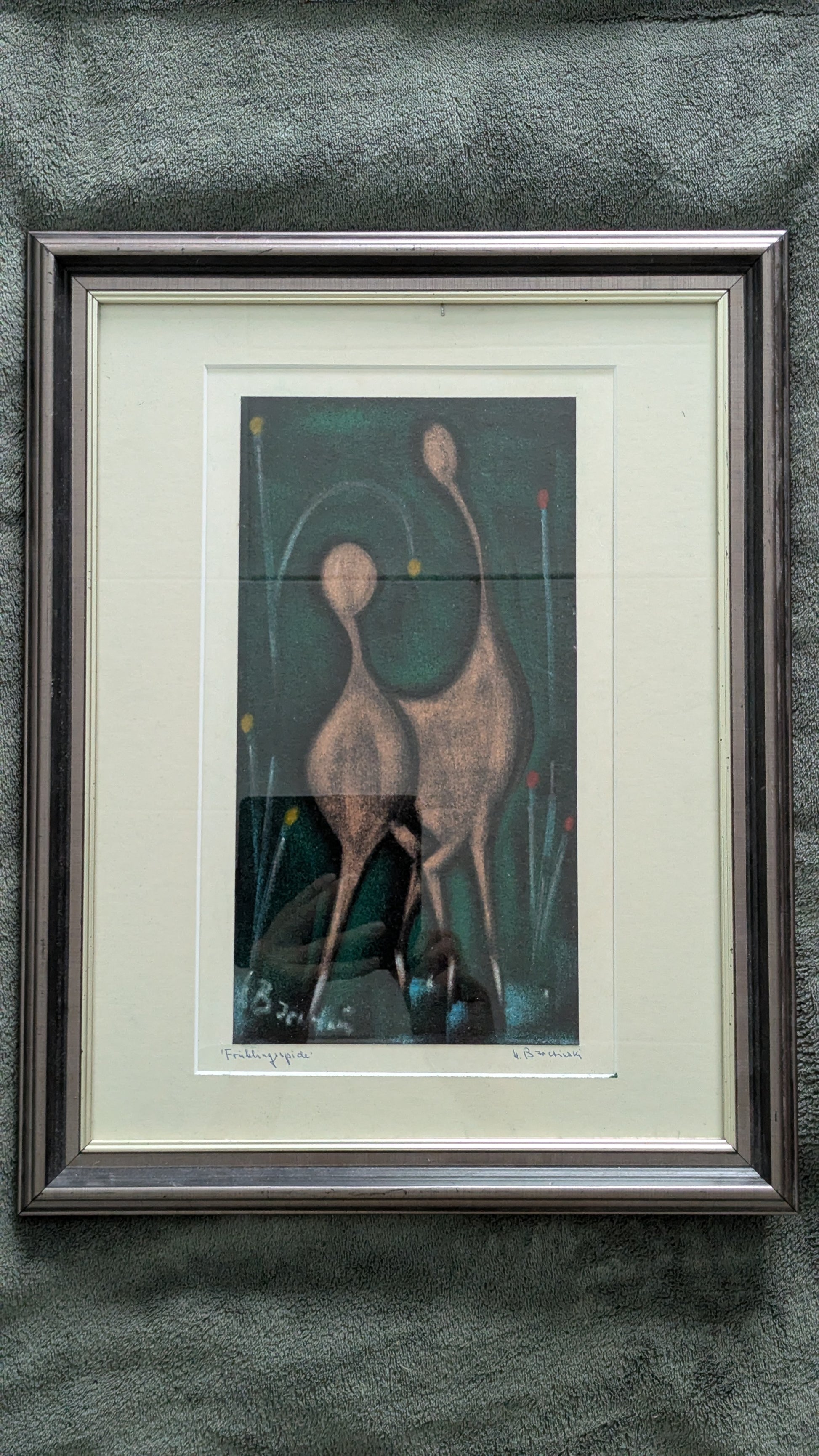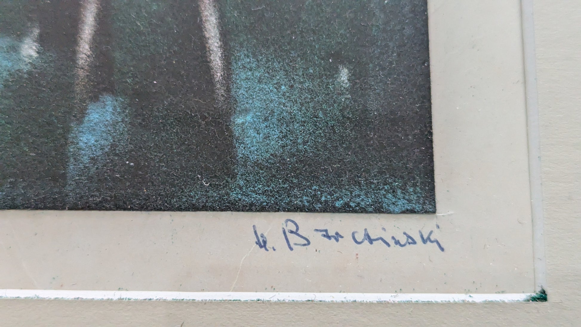 Henryk Barczinski signeeraama Frühlingsspiele eli Kevätleikkejä niminen pastellityö kankaalle.