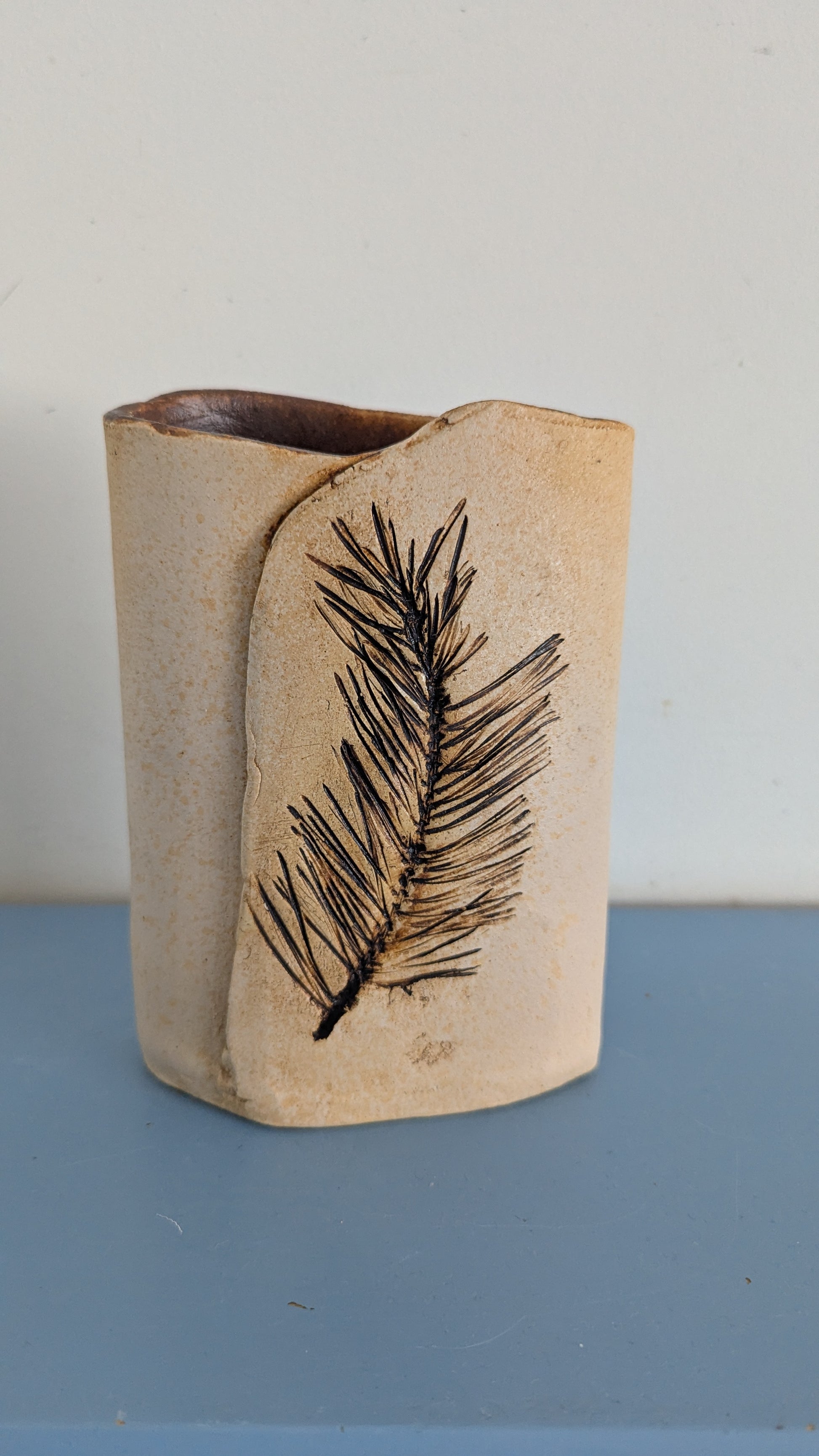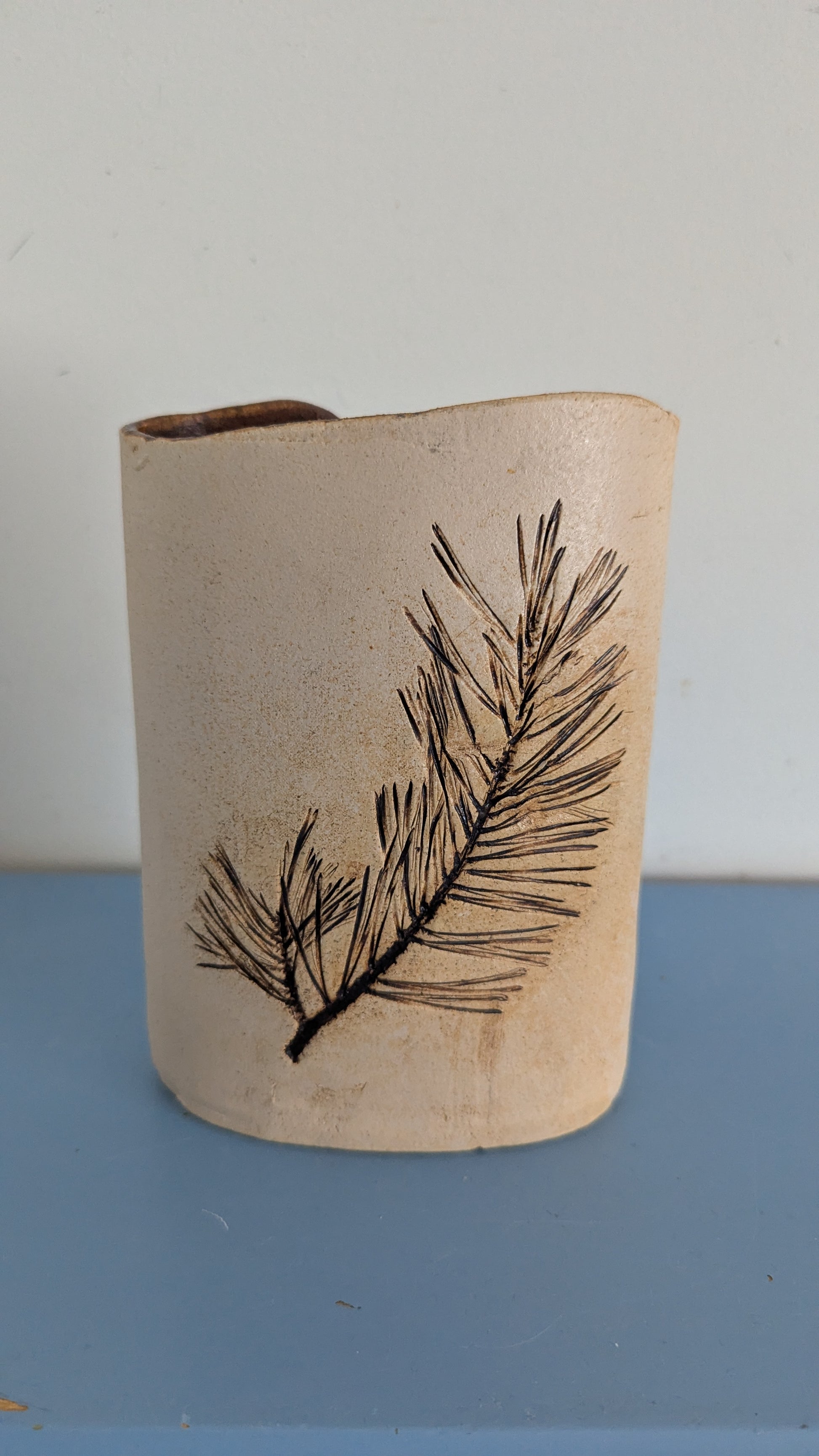 Maljakon molempia puolia koristaa männynoksakuvio.