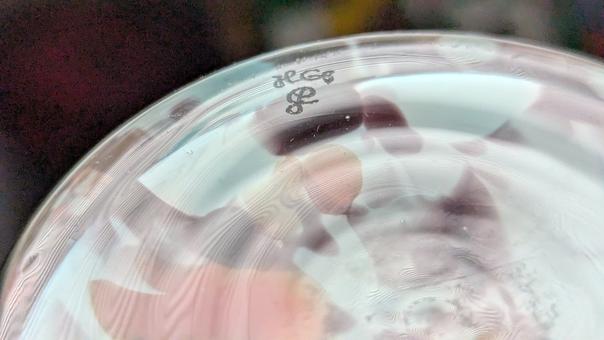 Pohjassa signeeraus HG ja PL eli Holmegaard ja Per Lütken