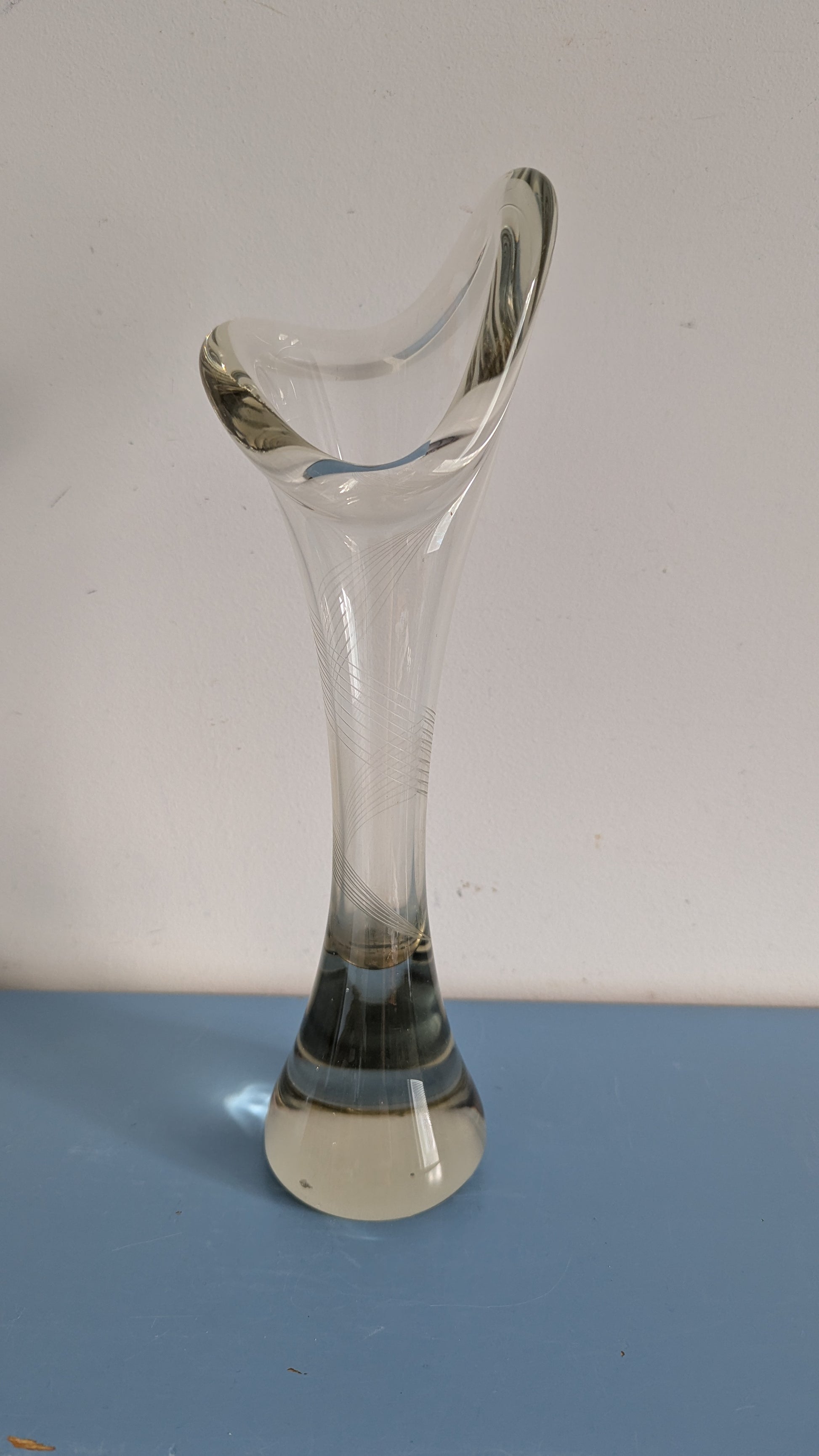 Materiaali: Vapaasti puhallettu ja venytetty lasi, driivattu, pohja ja kuvio hiottu