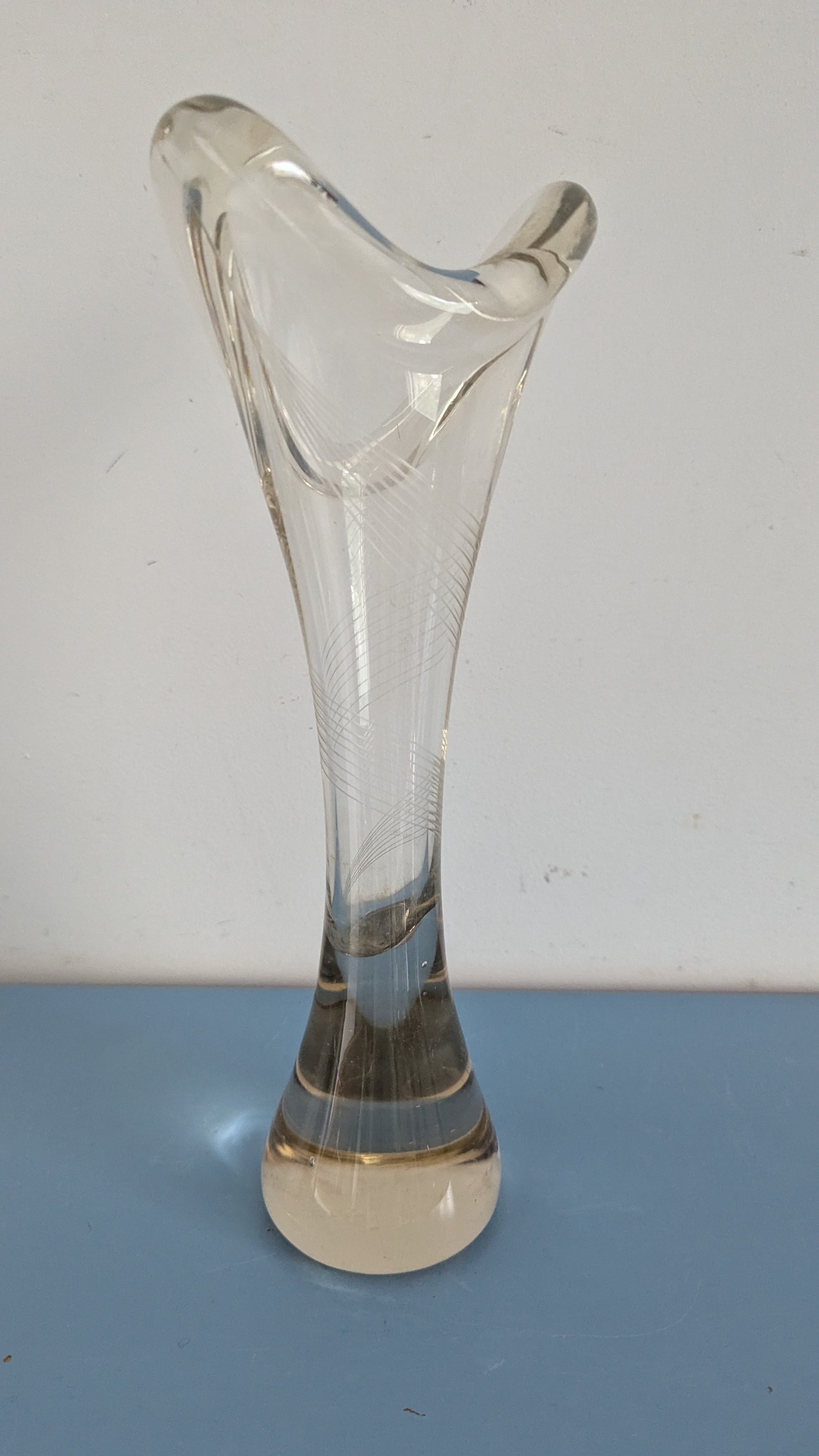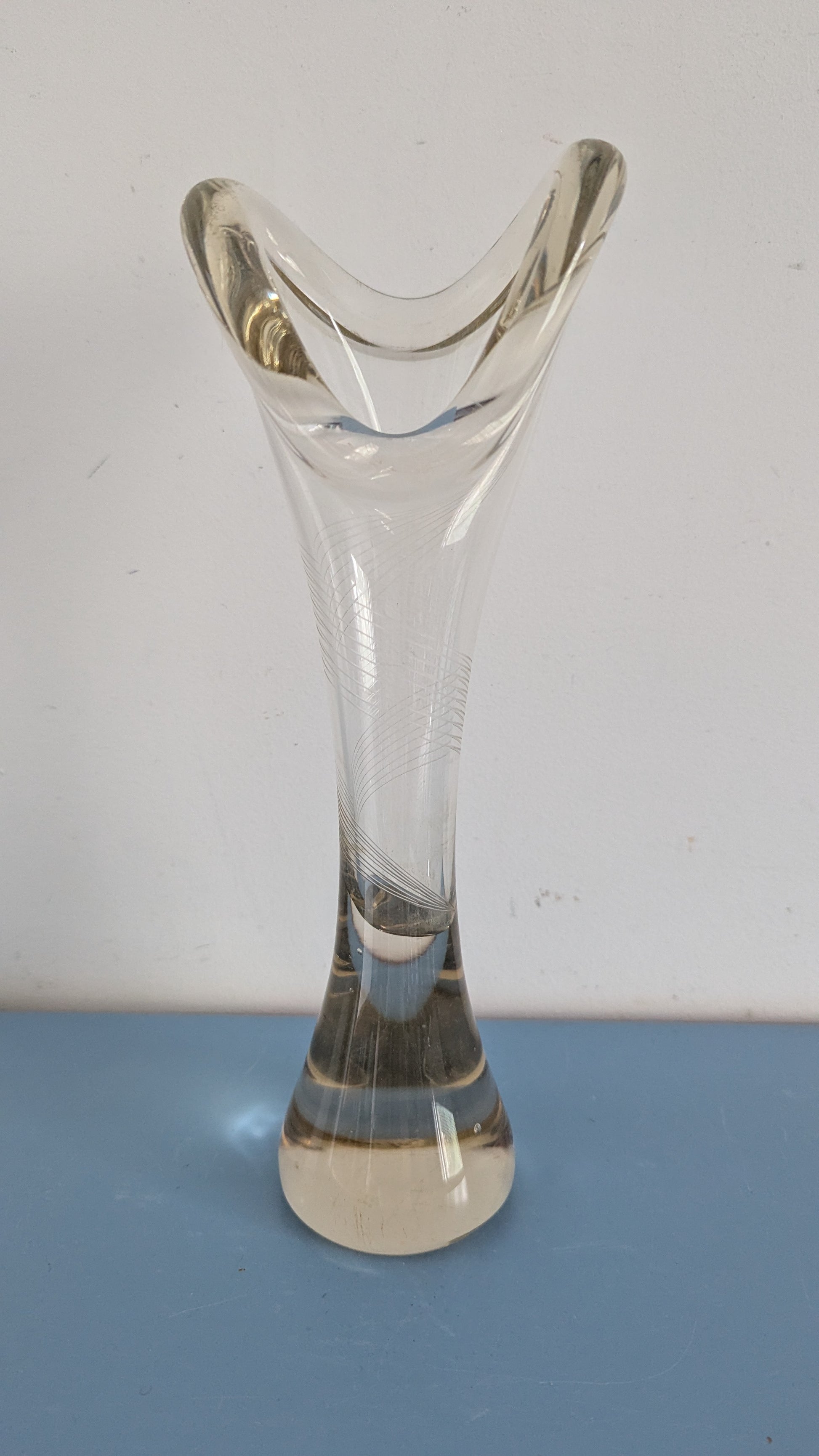 Materiaali: Vapaasti puhallettu ja venytetty lasi, driivattu, pohja ja kuvio hiottu