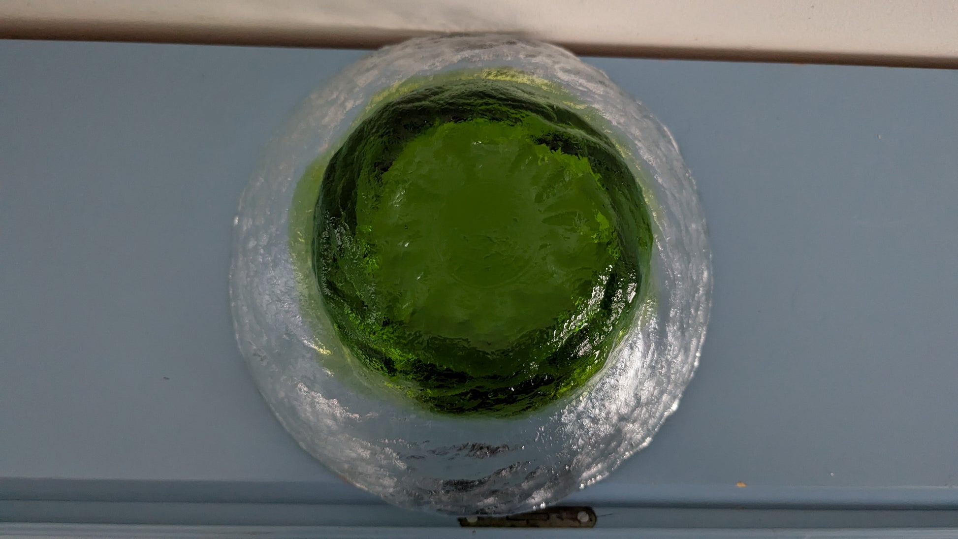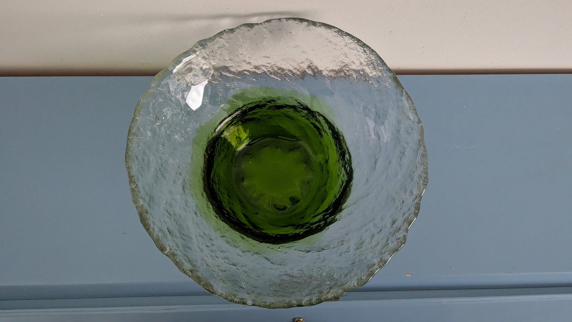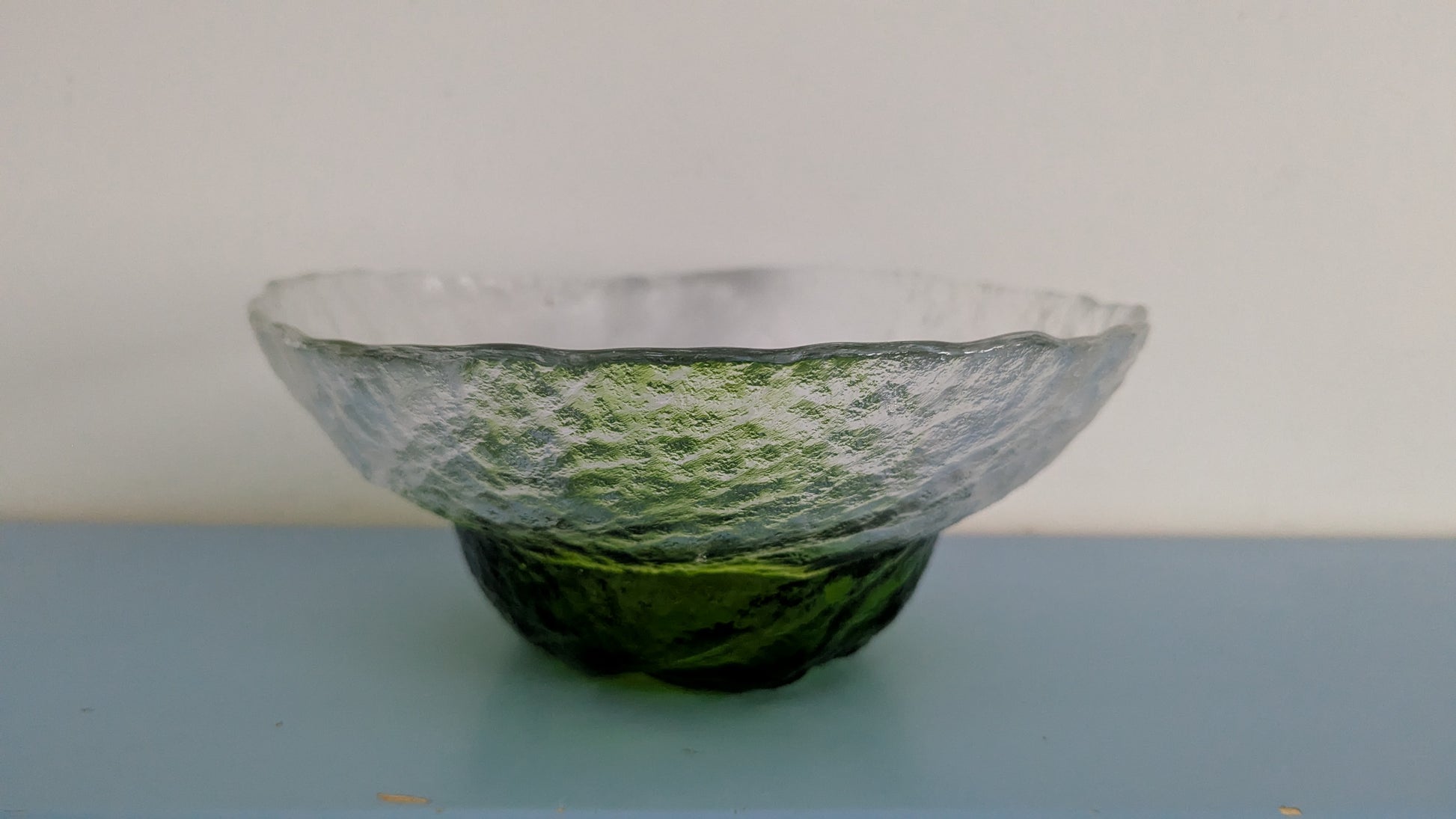 Ei iskemiä tai halkeamia. Vähäistä käyttökulumaa. Lasimassaan jäänyt kaksi viimeisen kuvan mukaista ilmakuplaa.