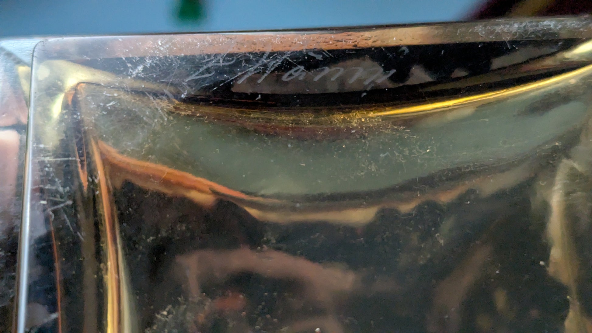 Ei iskemiä tai halkeamia. Pohjassa naarmua siirtelystä.