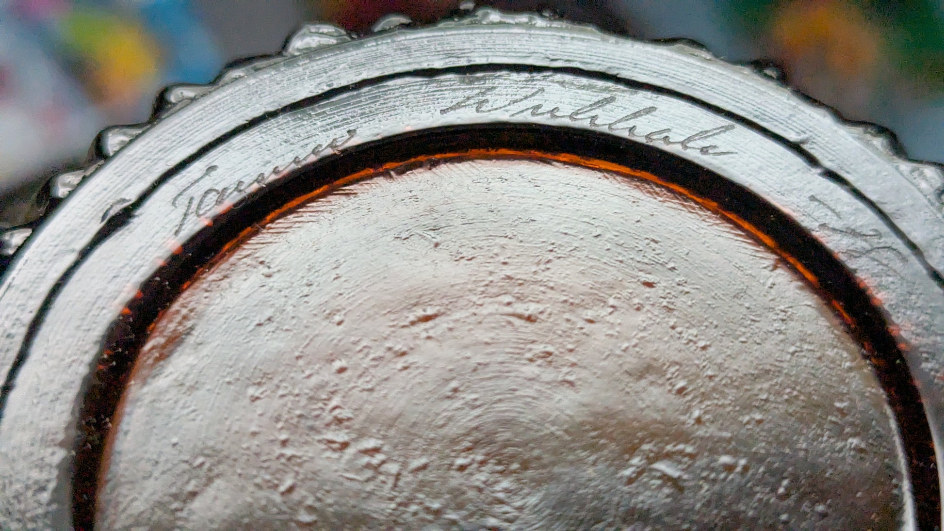 Pohjassa signeeraus Tauno Wirkkala -78 Humppila Finland. Revontulet oli tuotannossa 1972-1987 mutta kaiverruksen perusteella tämä kyseinen malja valmistettu vuonna 1978.