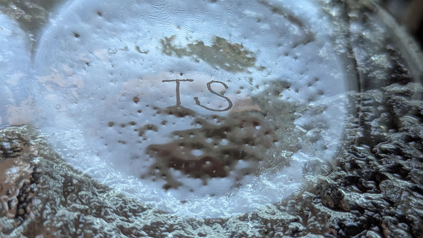 Ei iskemiä, halkeamia tai naarmuja. Kahden ylimmän solmun liitoskohta näkyy suhteellisen selkeästi. Näkyy viimeisessä kuvassa.