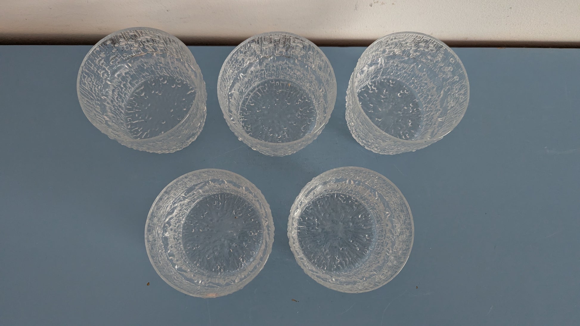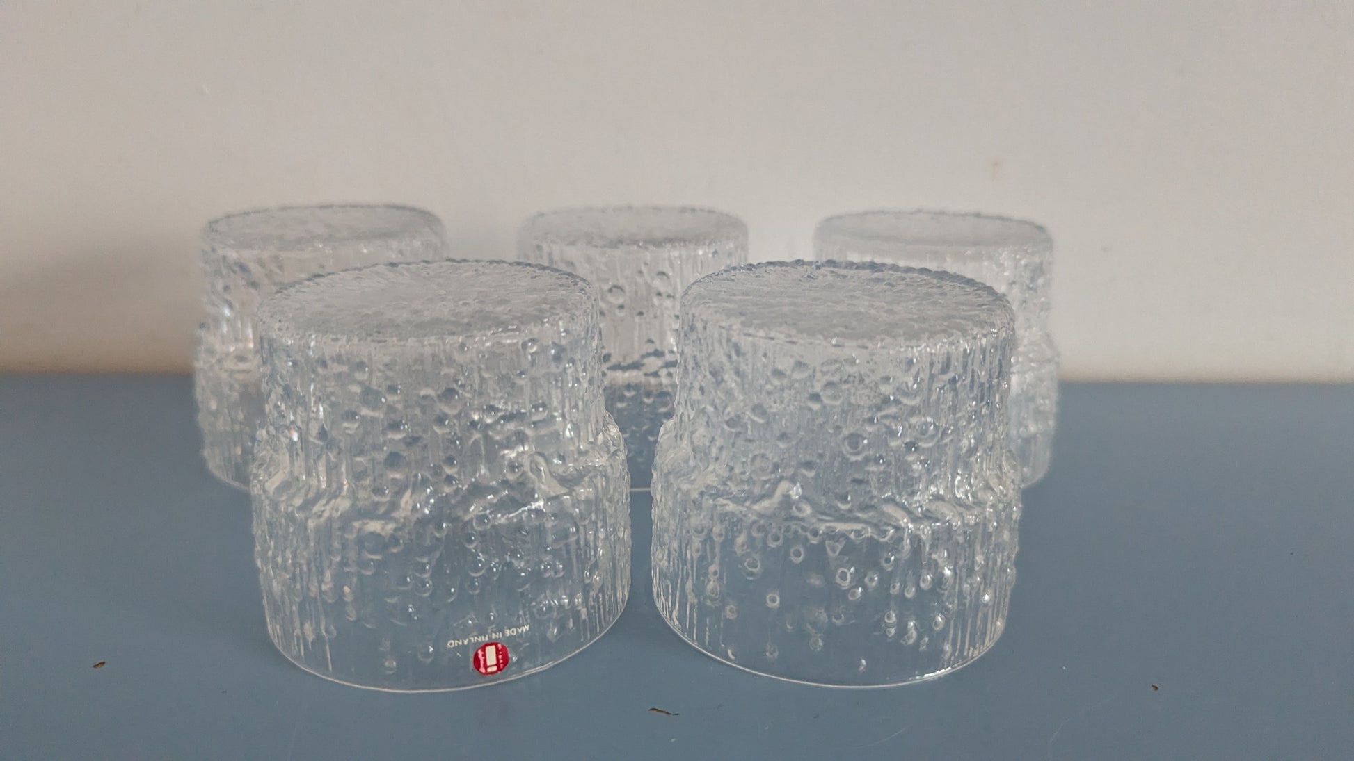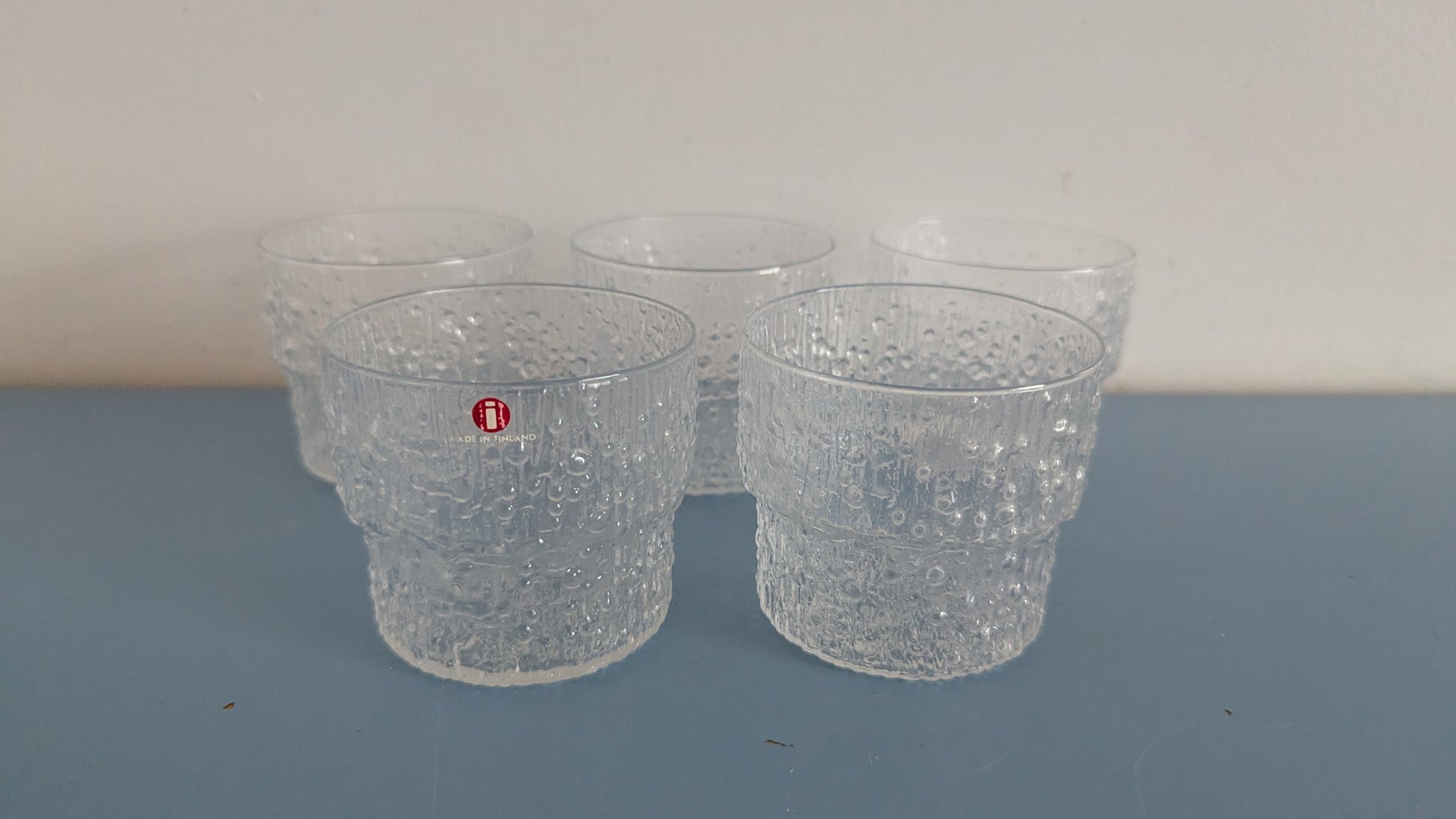 Yhdessä lasissa vielä Iittalan tarra paikalla. Ei halkeamia, iskemiä tai naarmuja.