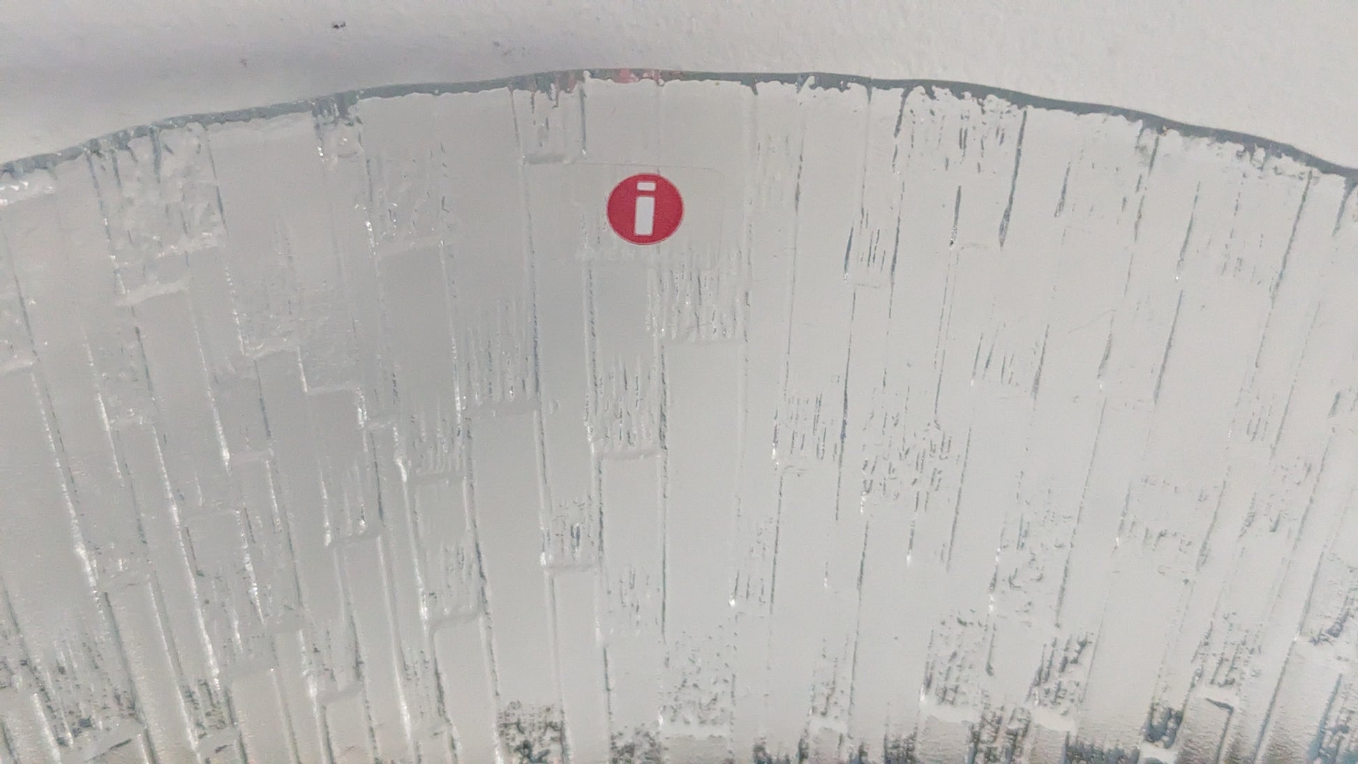 Iittalan tarra vielä paikalla. Ei iskemiä, halkeamia tai naarmuja.