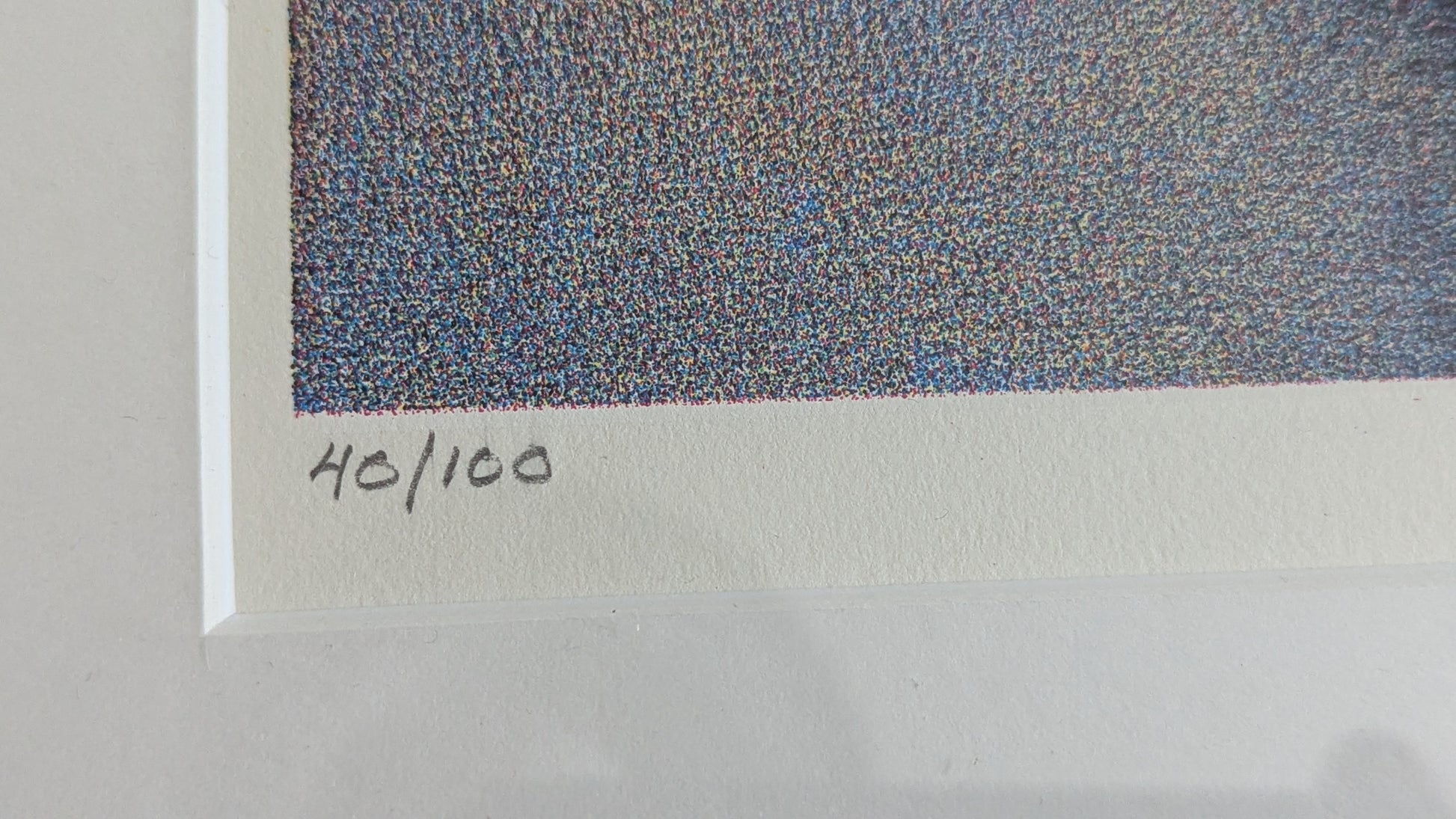 Teoksen alla numerointi 40/100 , taiteilijan signeeraus ja vuosiluku -98.