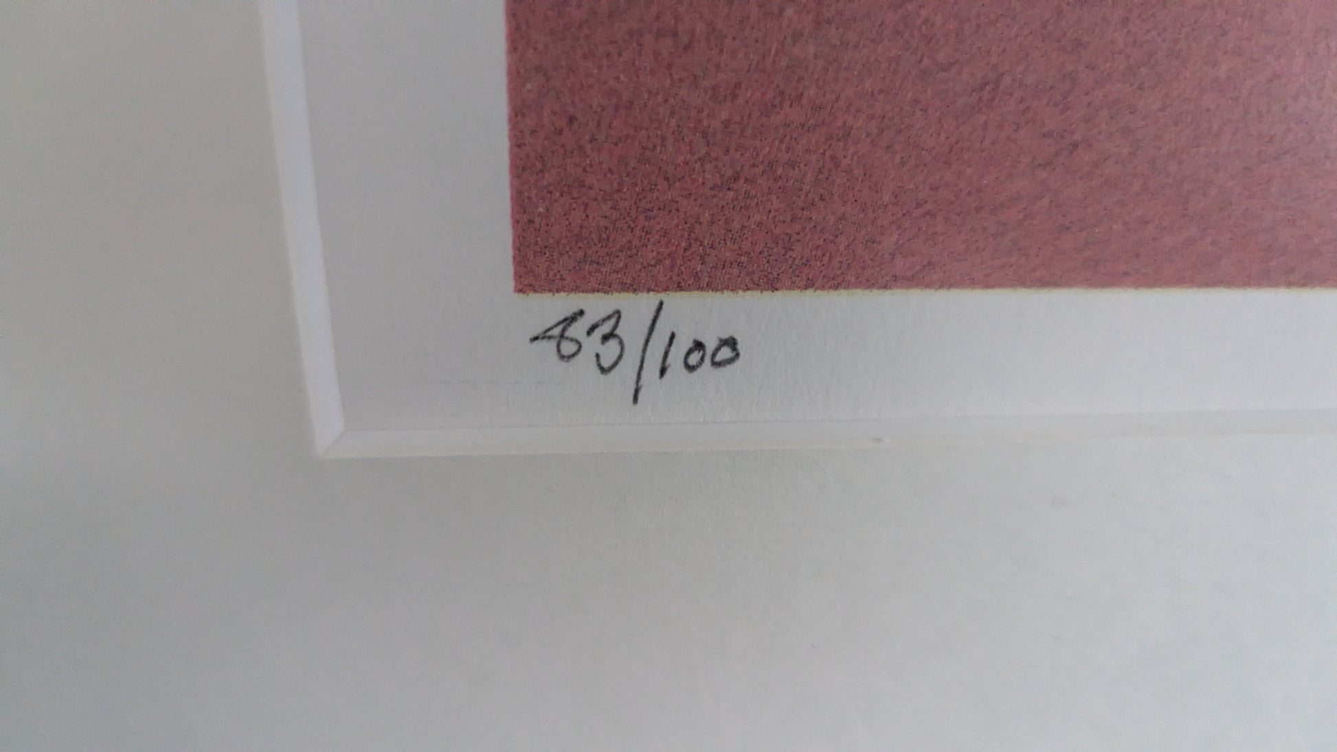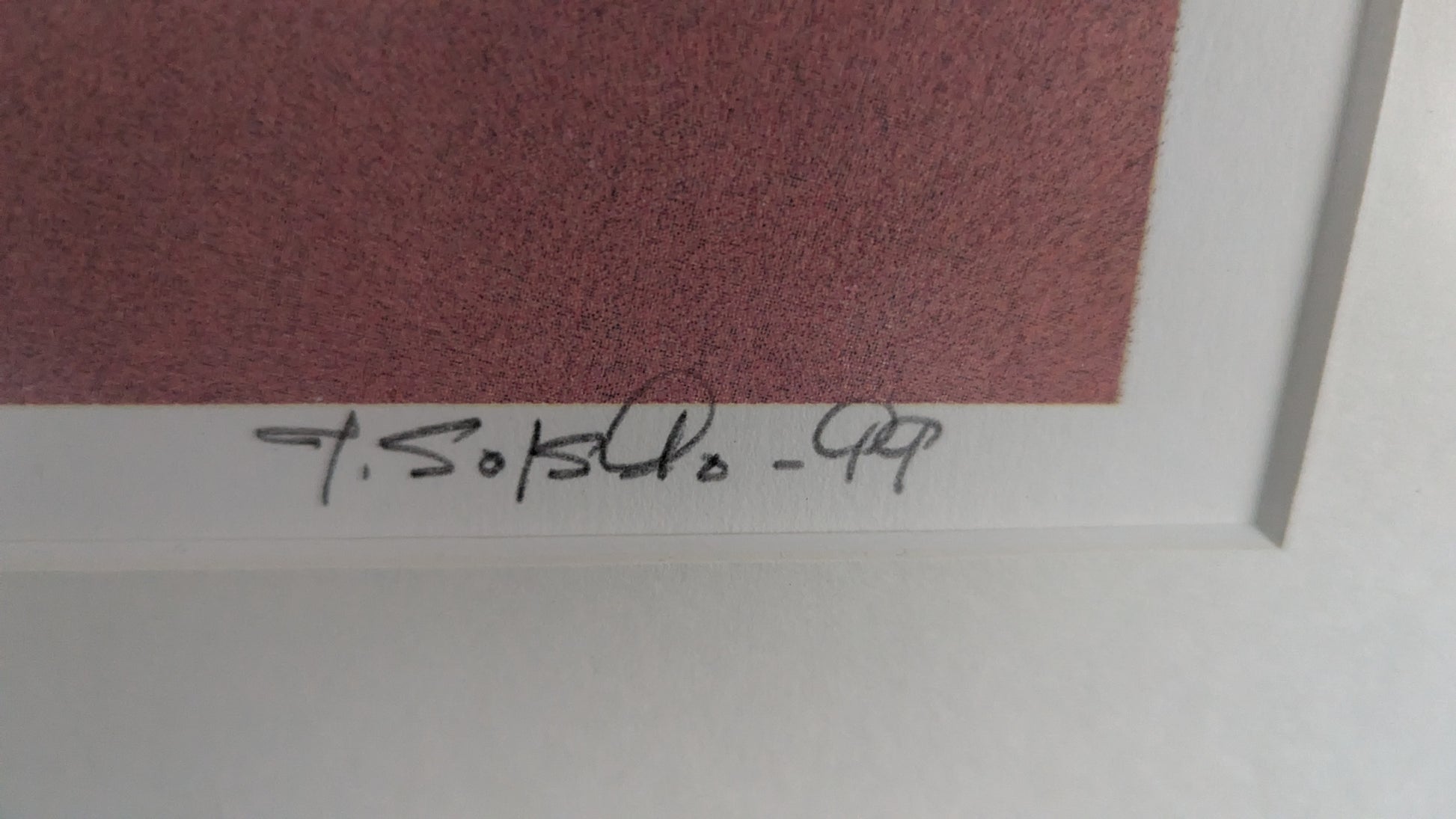 Teoksen alla numerointi 83/100, taiteilijan signeeraus ja vuosiluku -99.
