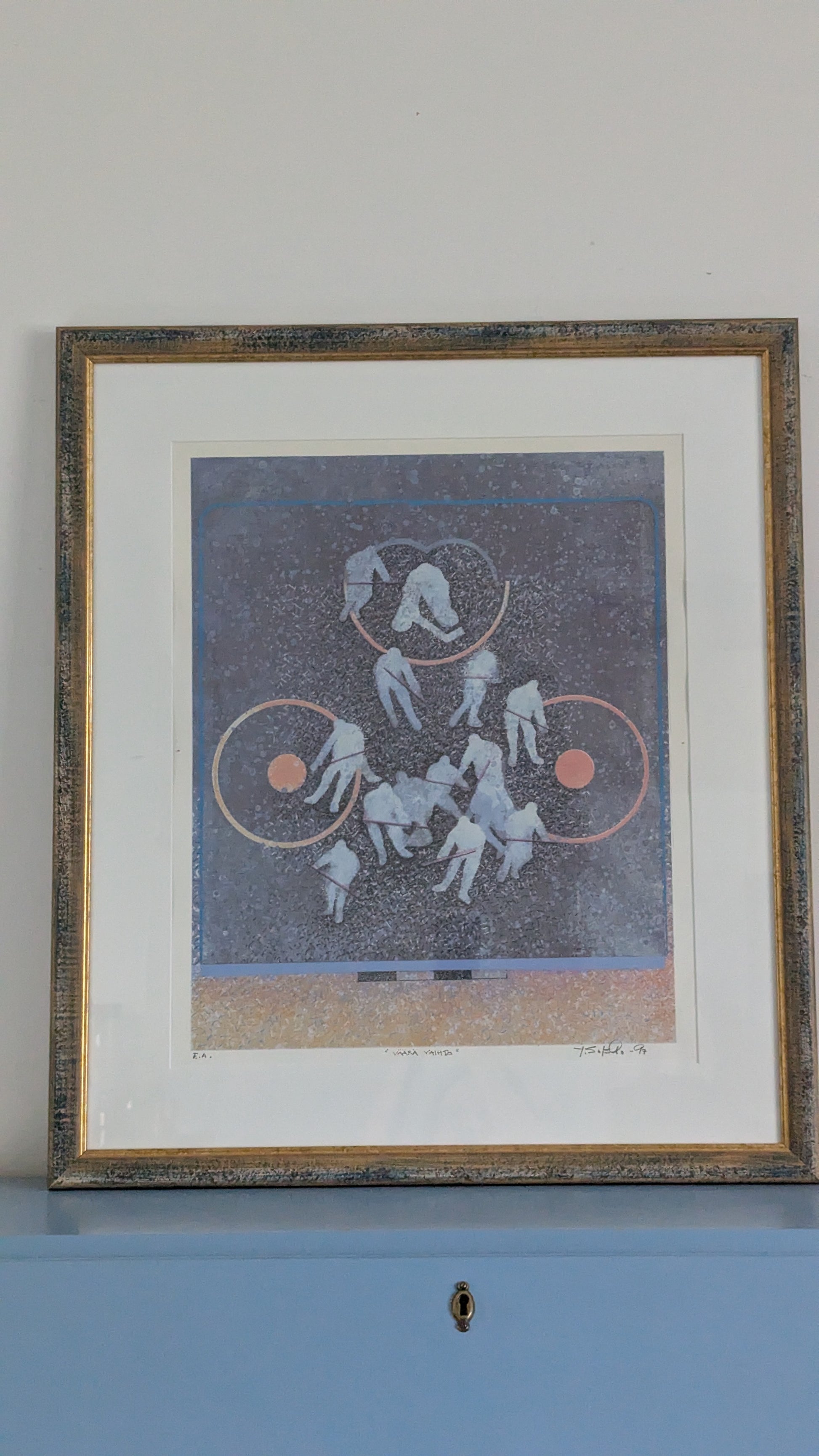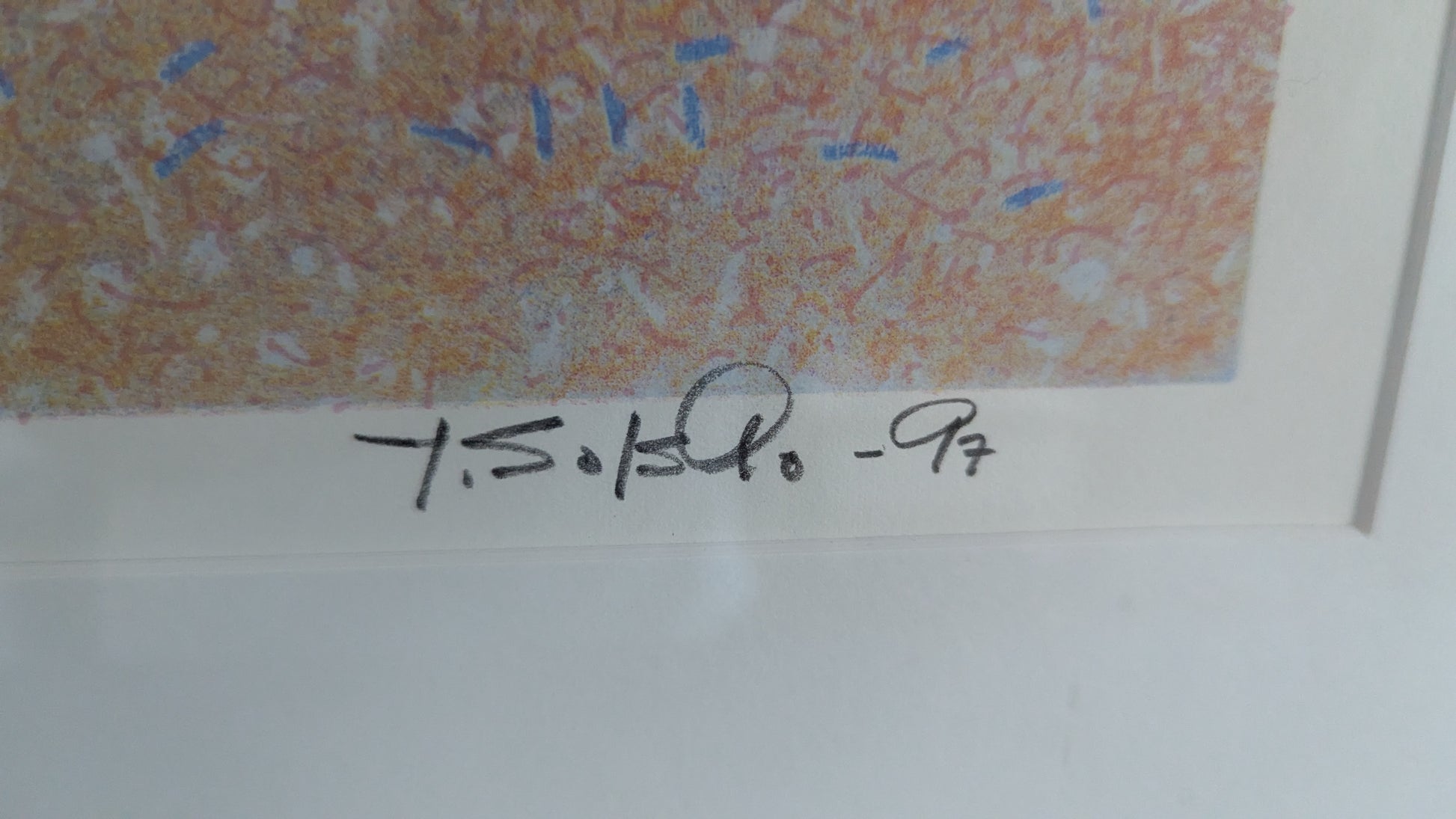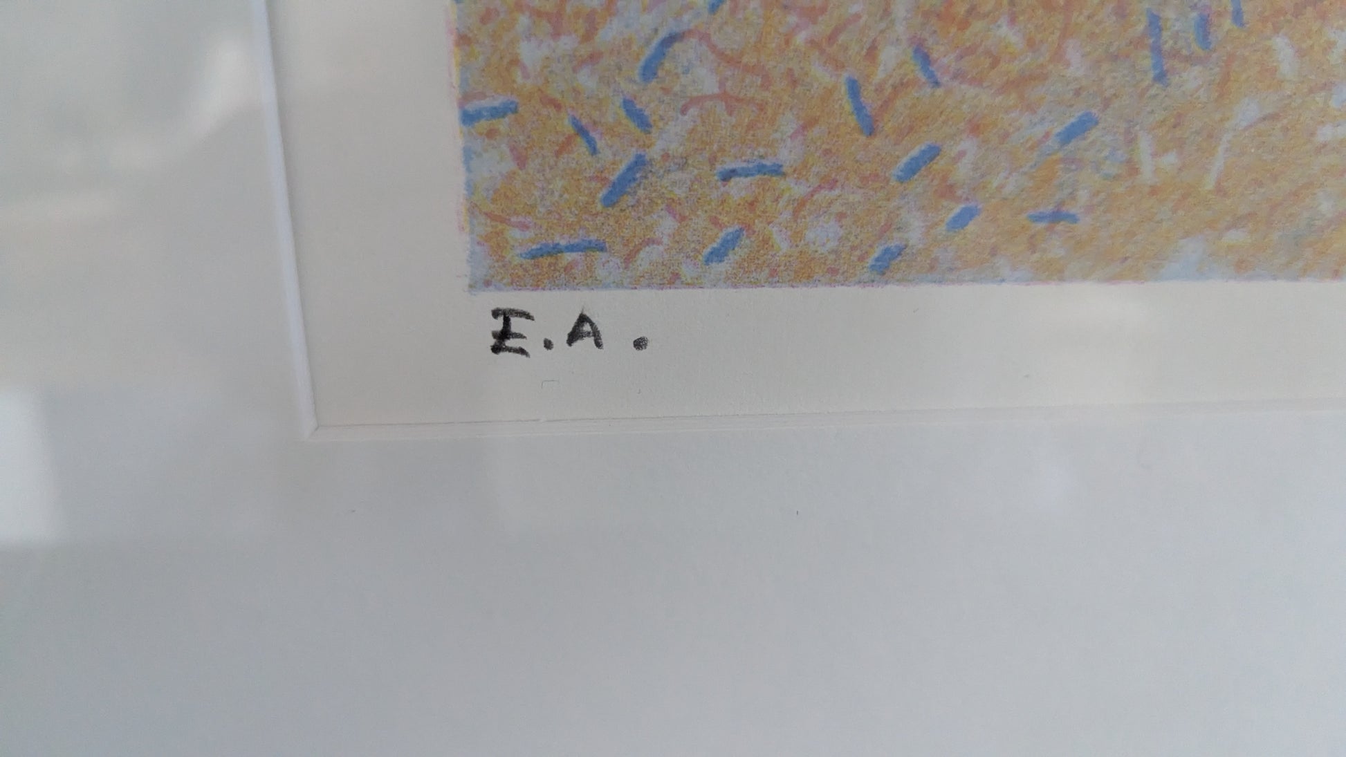 Teoksen alla merkintä E.A, joka tarkoittaa ns. taiteilijasarjan vedosta. Taiteilija voi ottaa omaan käyttöönsä pienen sarjan vedoksia. Taiteilijasarja saa olla enintään 10% varsinaisesta vedossarjasta. Lisäksi teoksen alla teoksen nimi, taiteilijan signeeraus ja vuosiluku -97.